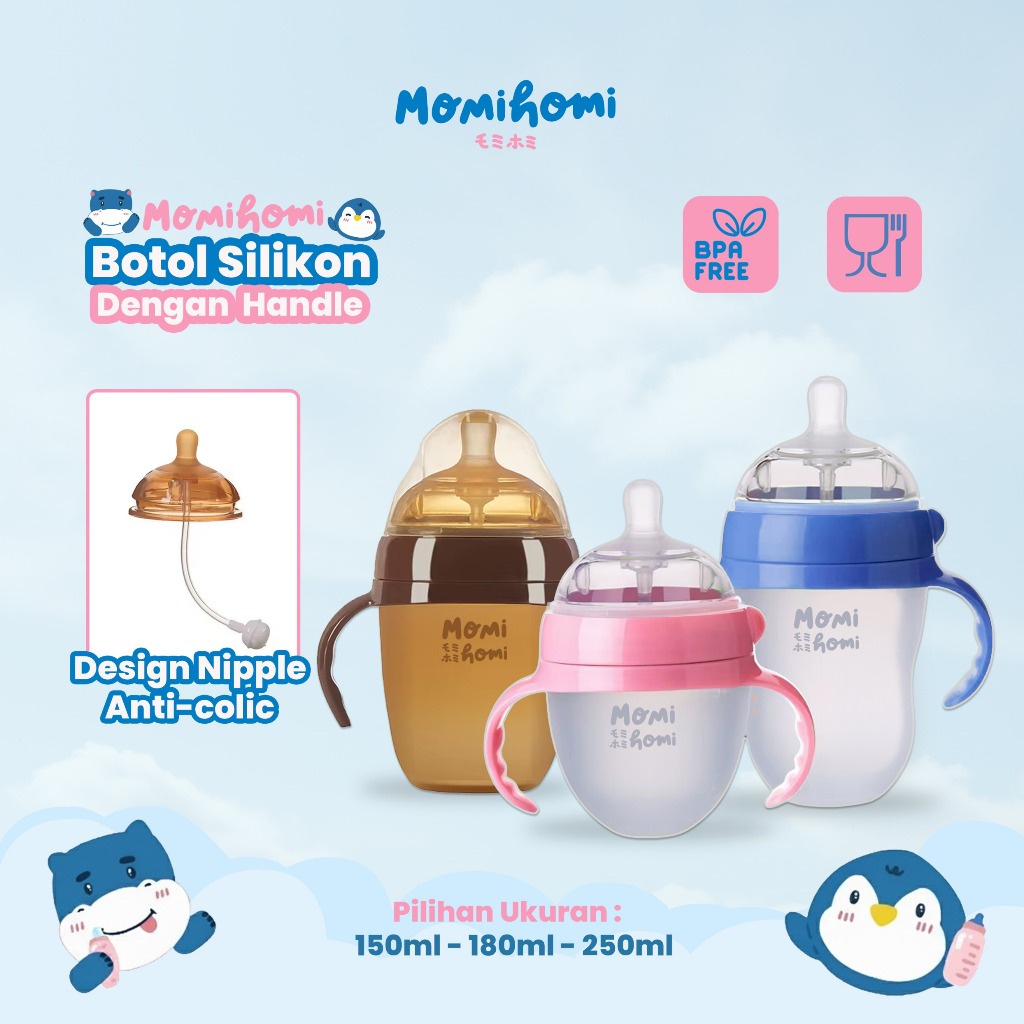 {SILIKON TAHAN PANAS} Momi Homi Botol Susu Bayi Silikon PPSU / Botol Dot Bayi Dengan Handle 0-12 Bulan Botol Susu Newborn Anti-colic