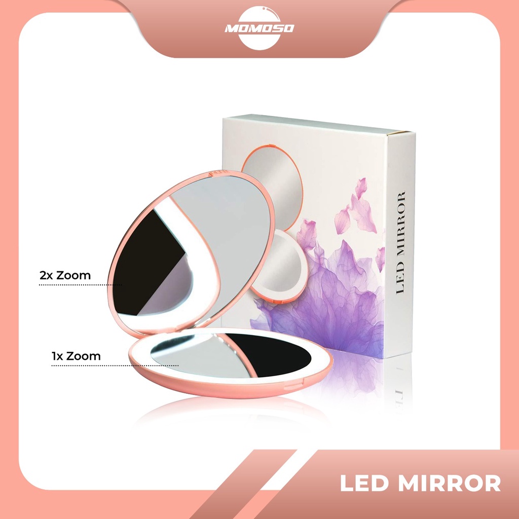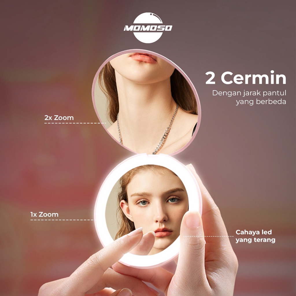 MOMOSO Cermin BULAT Lampu Mini LED / Cermin Makeup Mini Bulat LED / Cermin Lampu Aesthetic / Cermin LED Import Termurah