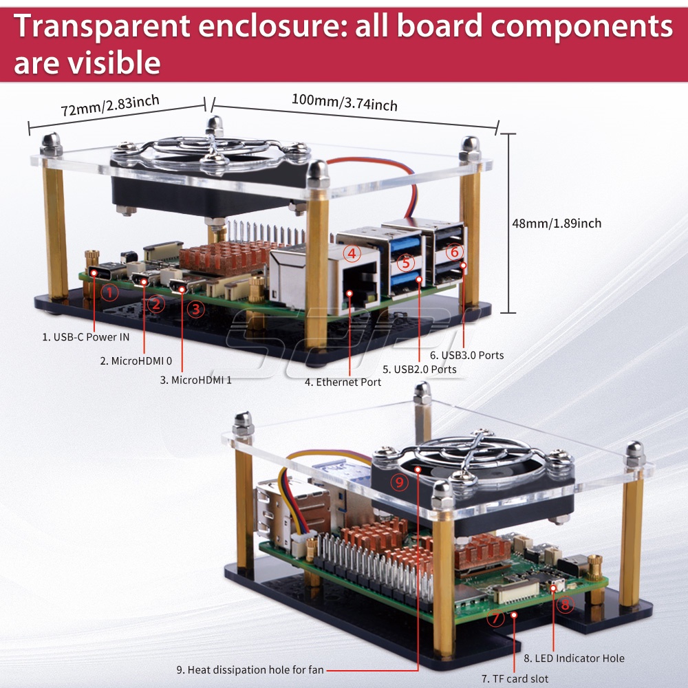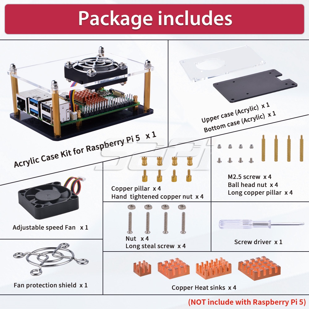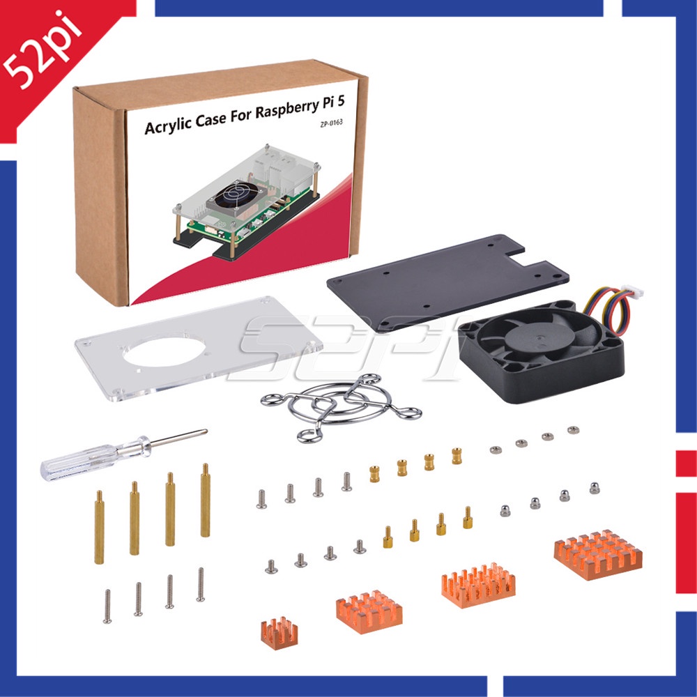 MONEYRAIN 52Pi Raspberry Pi 5 Acrylic Case with Fan Raspberry Pi 5 Case Fan with Heatsinks
