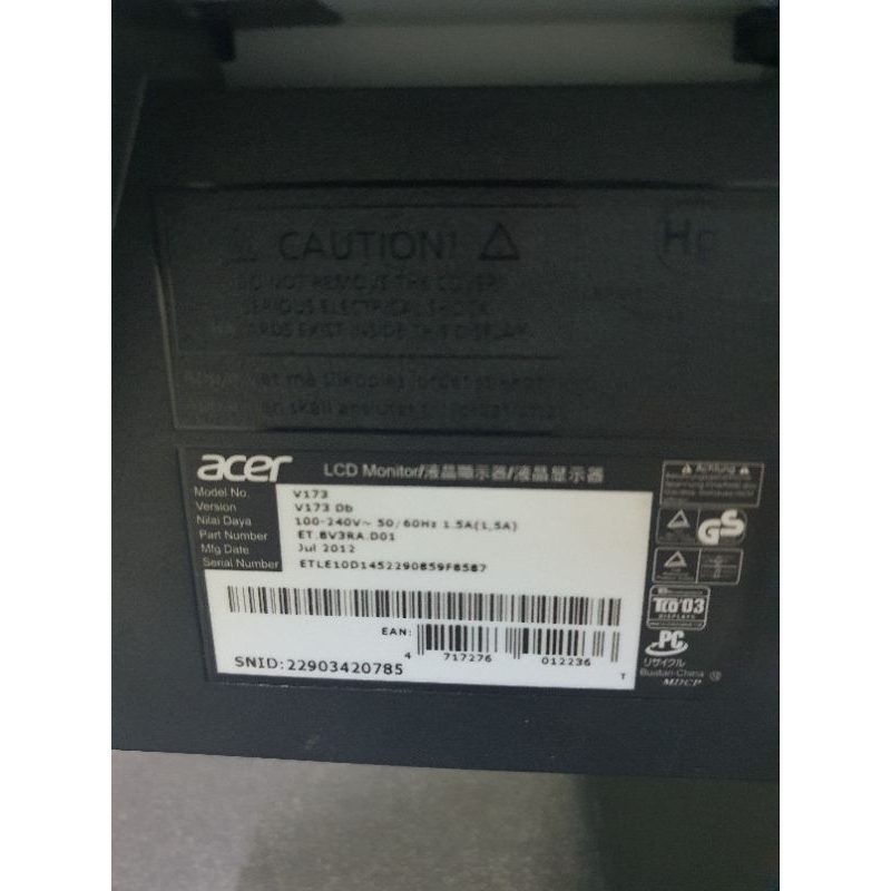 MONITOR ACER 17 INCHI KOTAK MULUS LIKE NEW