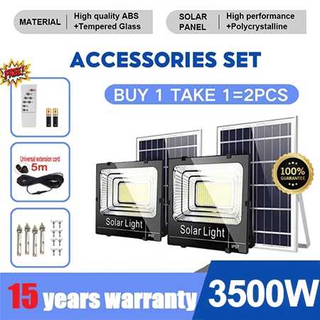 MOOOZ [Beli 1 Gratis 1] Lampu tenaga surya outdoor lampu sorot solar cell otomatis Lampu solar panel Tahan air IP67 LED super terang 15000W remote Halaman Taman