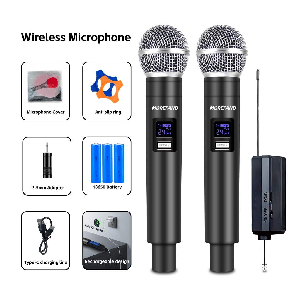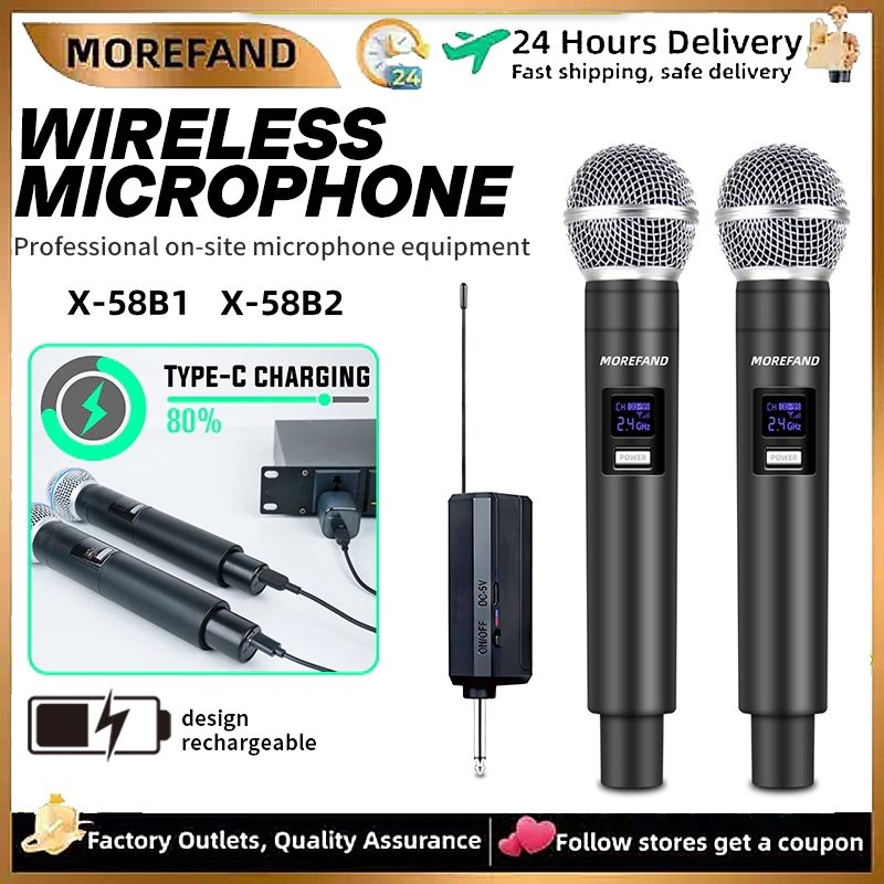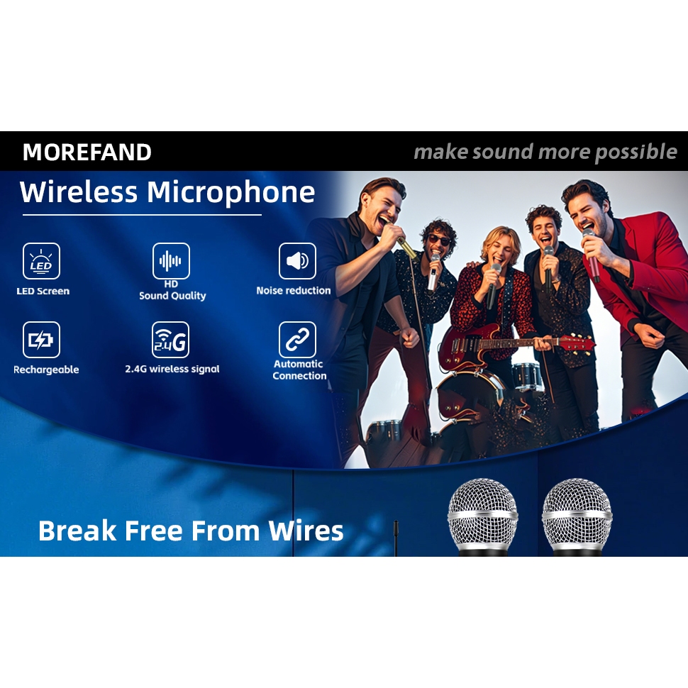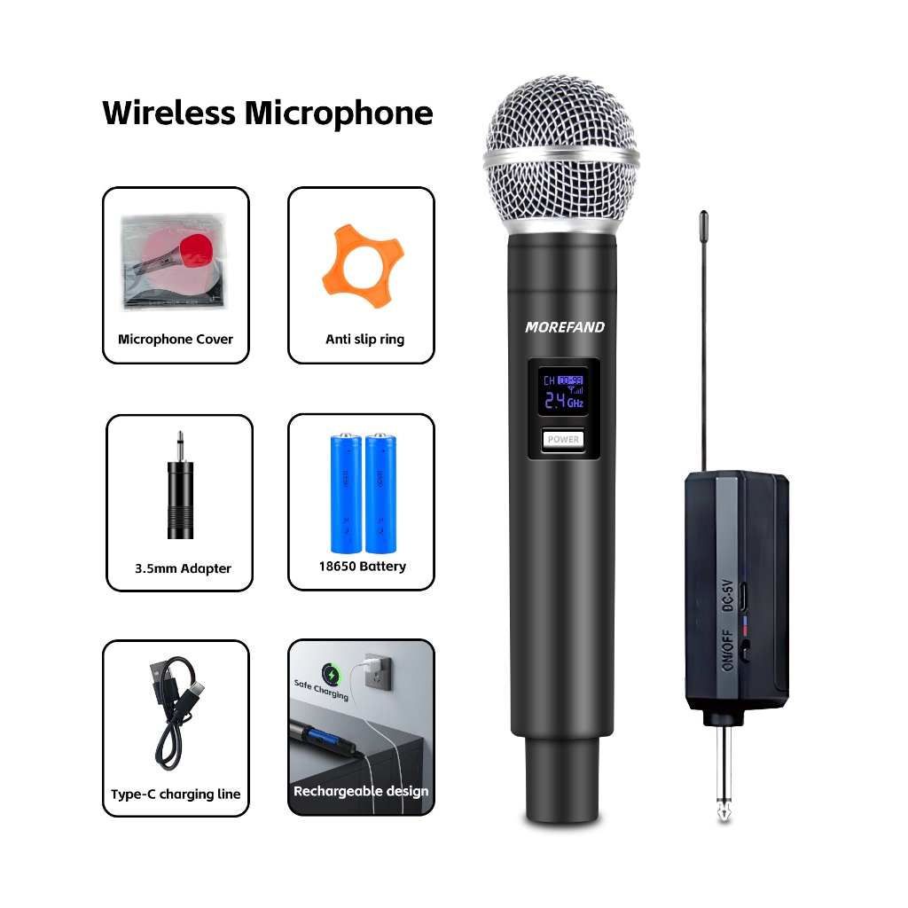 Mic Wireless | Microphone UHF Handheld Dinamis Chargeable, Baterai Cas 16850 mAh, Mic Wireless Profesional Handheld Full Range Cocok untuk Karaoke