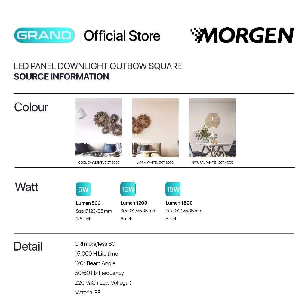 MORGEN - DOWNLIGHT LED PANEL OB KOTAK GRAND SERIES 6W 12W 18W MG-GDLOB0 / DOWNLIGHT LED / DOWNLIGHT PANEL / DOWNLIGHT OUTBOW / OUTBOW KOTAK / DOWNLIGHT KOTAK