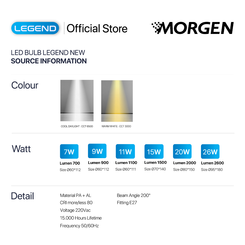 MORGEN Lampu LED Bulb Legend - Bohlam Lampu Led / Lampu Rumah Terang / 3-15W E27 6500K/3000K