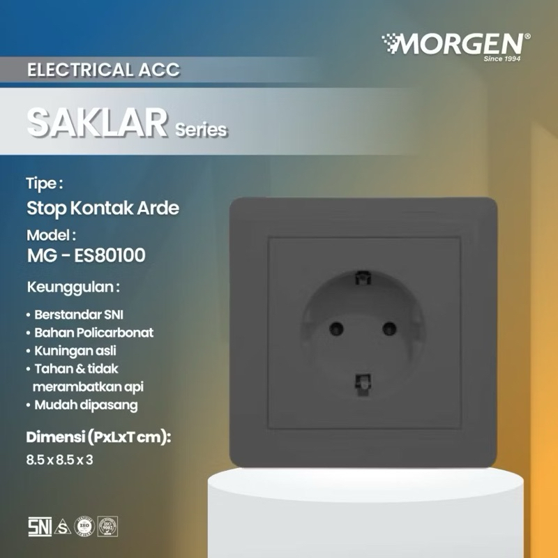 MORGEN TIPE MGES-801 Saklar Electrical Series Stop Kontak / Saklar Engkel Tunggal / Saklar Seri / Saklar Triple Tripel / Stop TV / Engkel Stop Arde BODY WARNA GREY ABU ABU MGES 801 MEWAH MINIMALIS