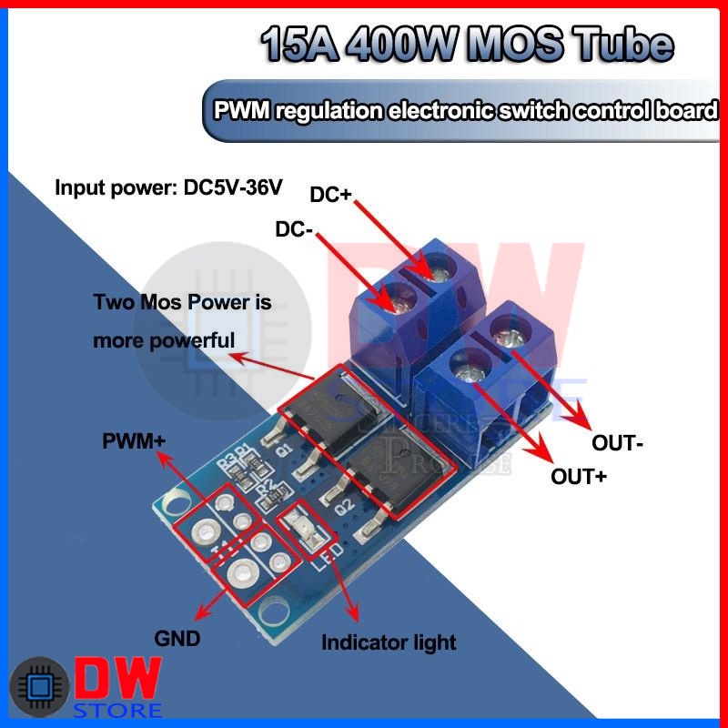 MOSFET PWM Trigger Switch Module MOS FET 15A 400W High Power DC 5V-36V