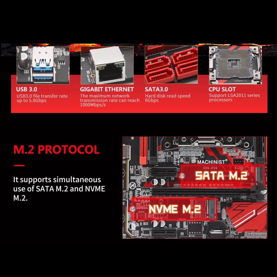 MOTHERBOARD X99 GAMING SERIES FOR INTEL LGA 2011 V3 / V4 - DDR4 MEMORY - SUPPORT NVME - Machinist X99 RS9 CERTIFIED BY ROHS & CE - BEST QUALITY