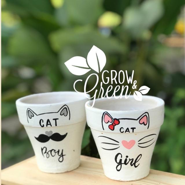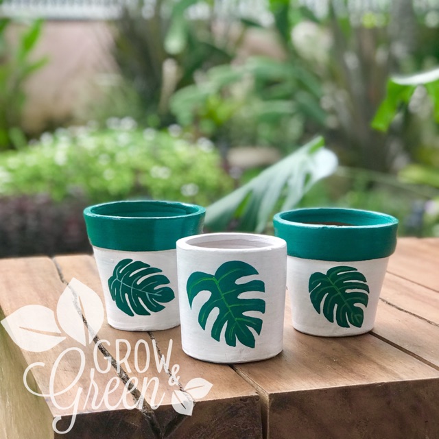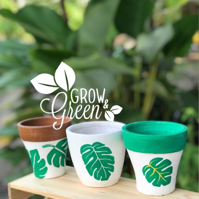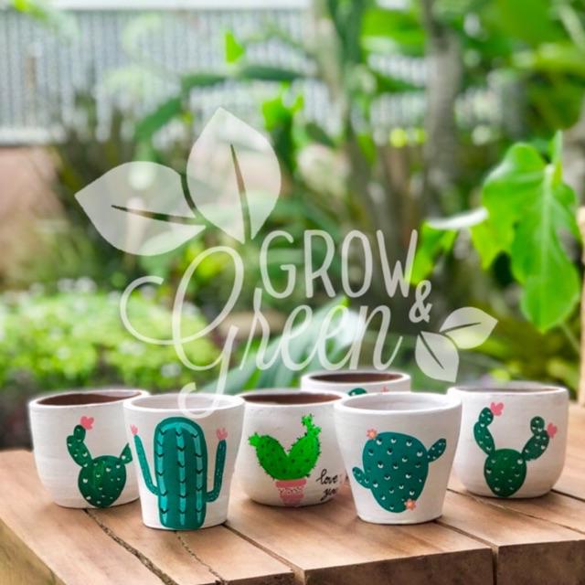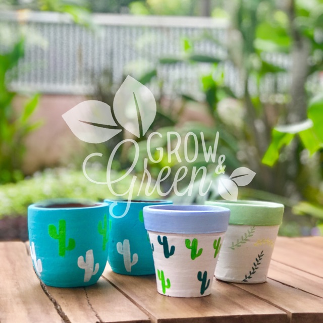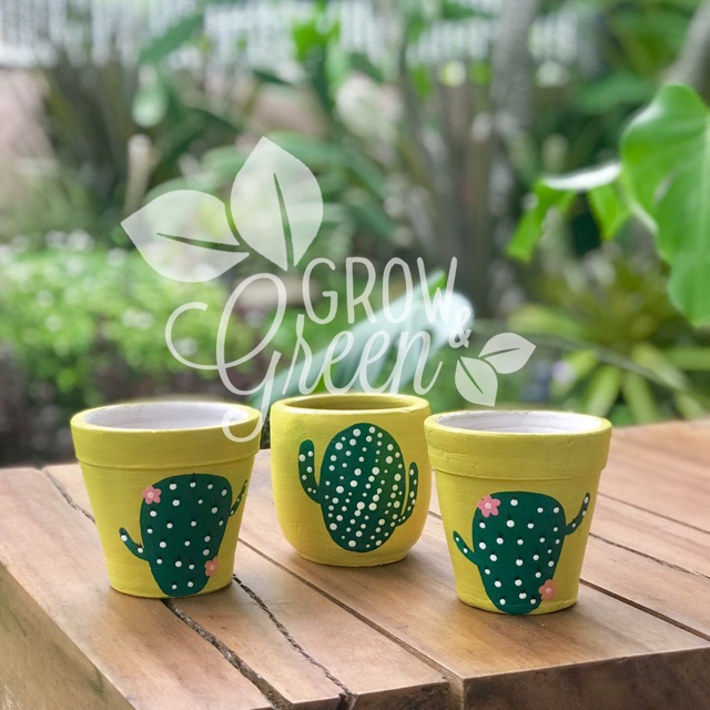 MOTIF KAKTUS / POT GERABAH / TERRACOTTA / TERAKOTA / TANAH LIAT LUKIS