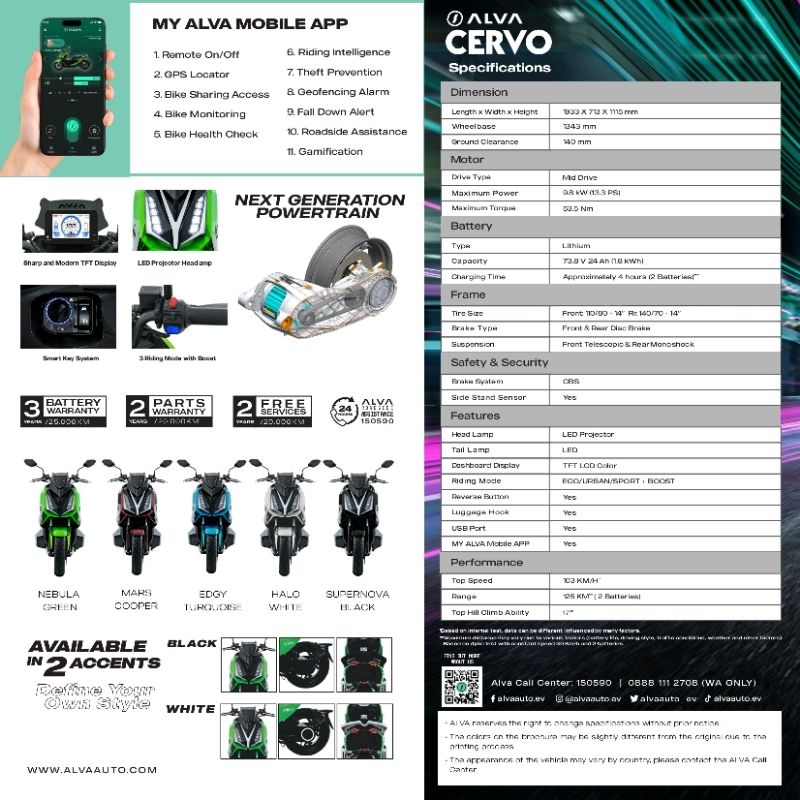 MOTOR LISTRIK ALVA CERVO [ DISKON 7JT ] 2 BATTERY TOP SPEED 103KM RANGE 125KM ONTHEROAD JAWATIMUR