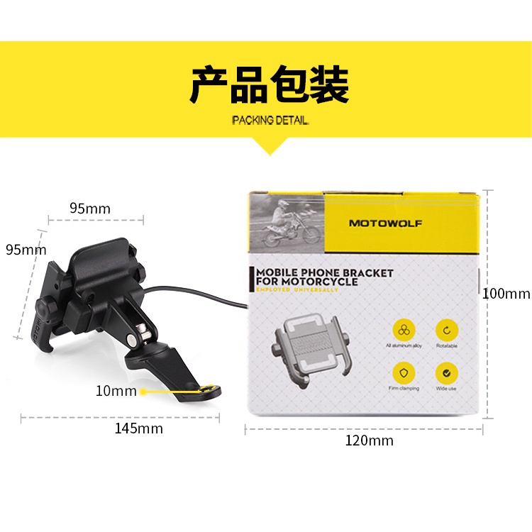 MOTOWOLF Phone Holder Universal Sepeda Motor Original Alumunium