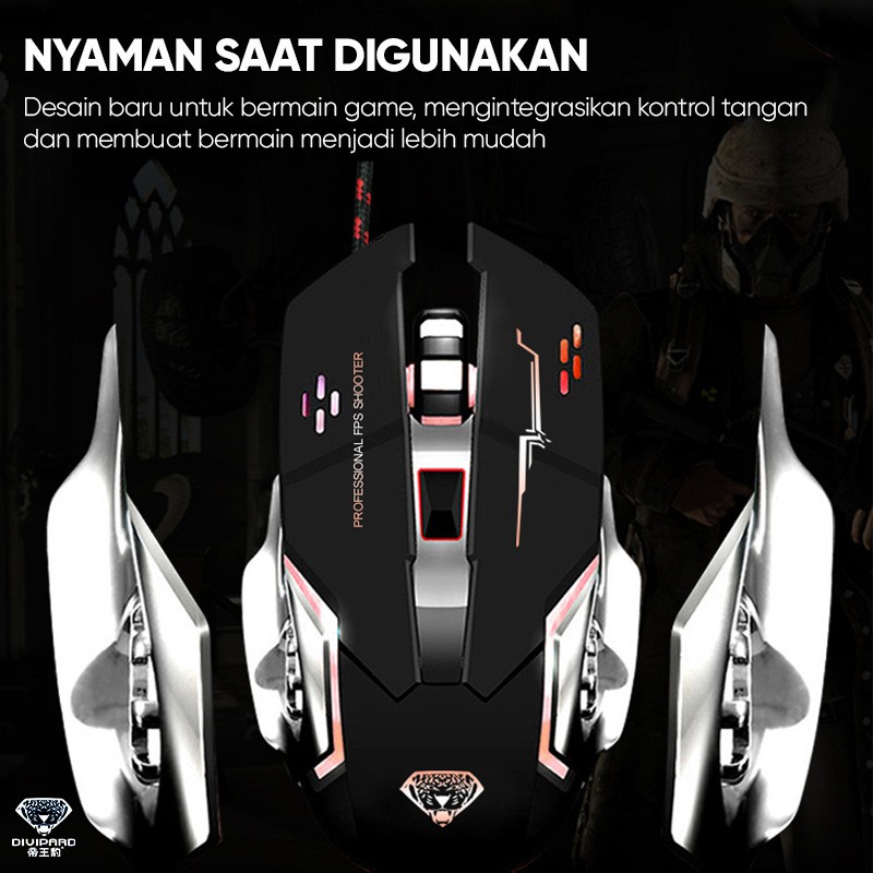 MOUSE GAMING COLORFUL BACKLIGHT DIVIPARD G502 3200 DPI - MOUSE GAMING KABEL USB