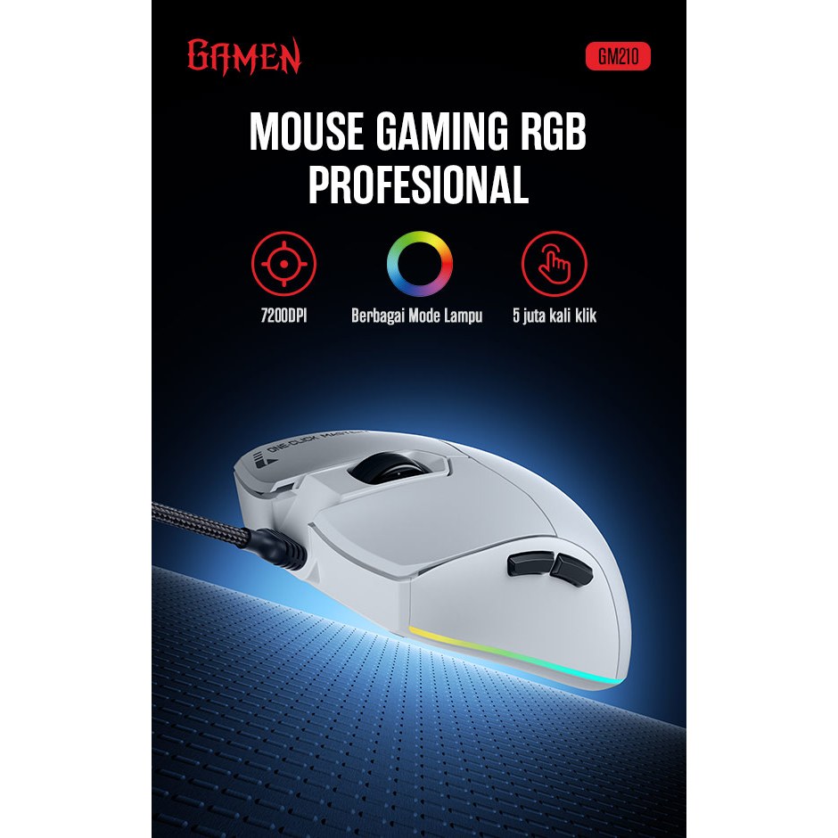 MOUSE Gaming GAMEN GM210 White Gaming RGB Wired Mouse 7200DPI