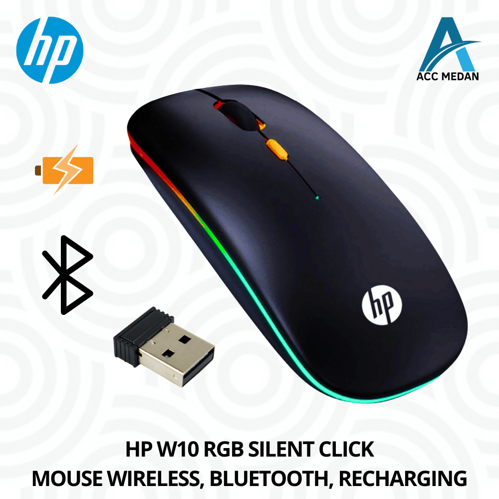 HP W10 RGB ORIGINAL - MOUSE WIRELESS, BLUETOOTH, SILENT CLICK, RECHARGING