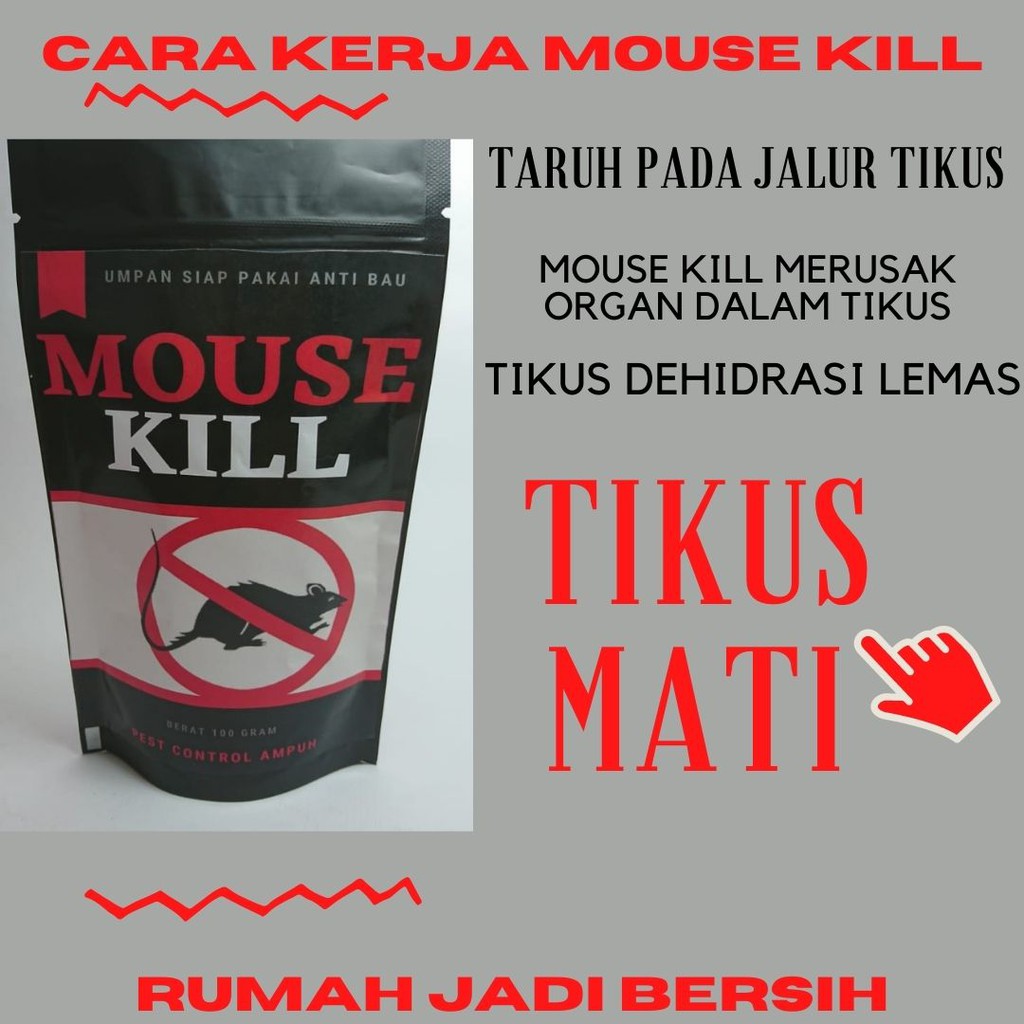 MOUSE KILL Racun Tikus Paling Ampuh Terpercaya 100% 100gr Insektisida Obat Hama DLL