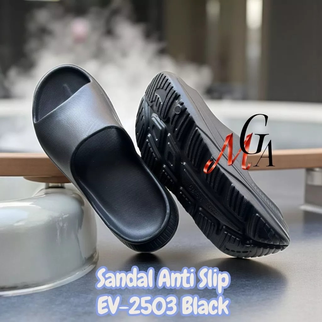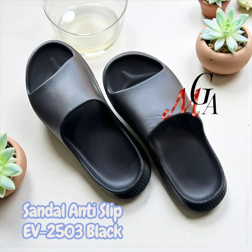 MS EV-2503 Sandal Slop Anti Slip Unisex Hitam Dan Putih Sandal Santai Anti Licin Sandal Selop