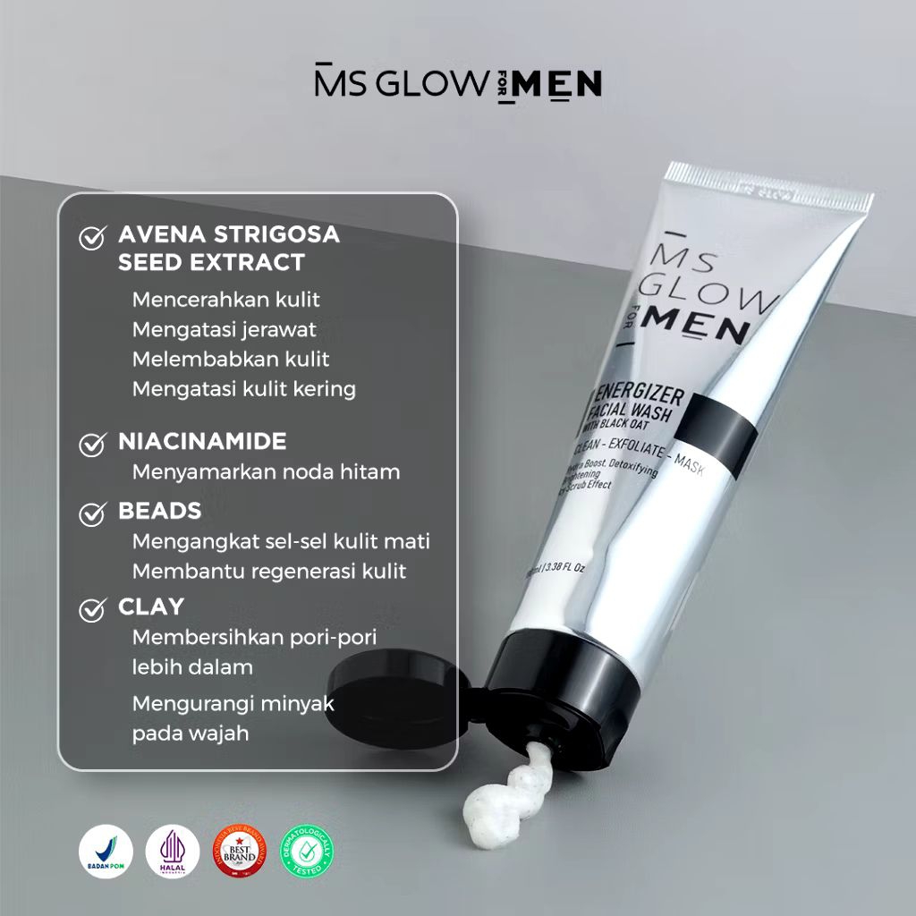 MS Glow Men Facial Wash Original (FREE PACKING BUBBLE WRAP) / Ms Glow For Men Sabun Muka Pria
