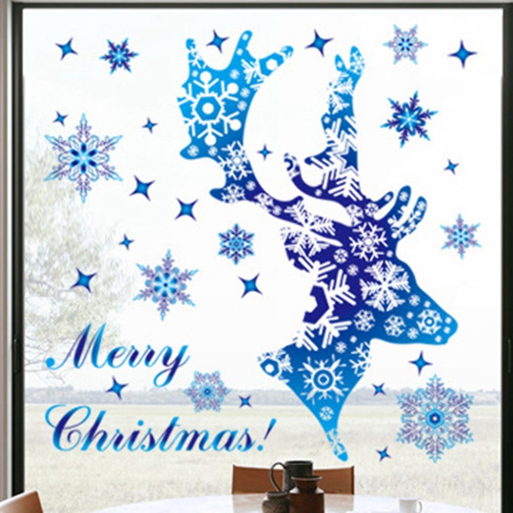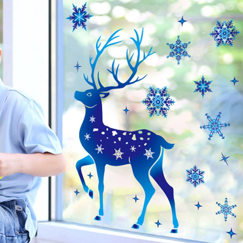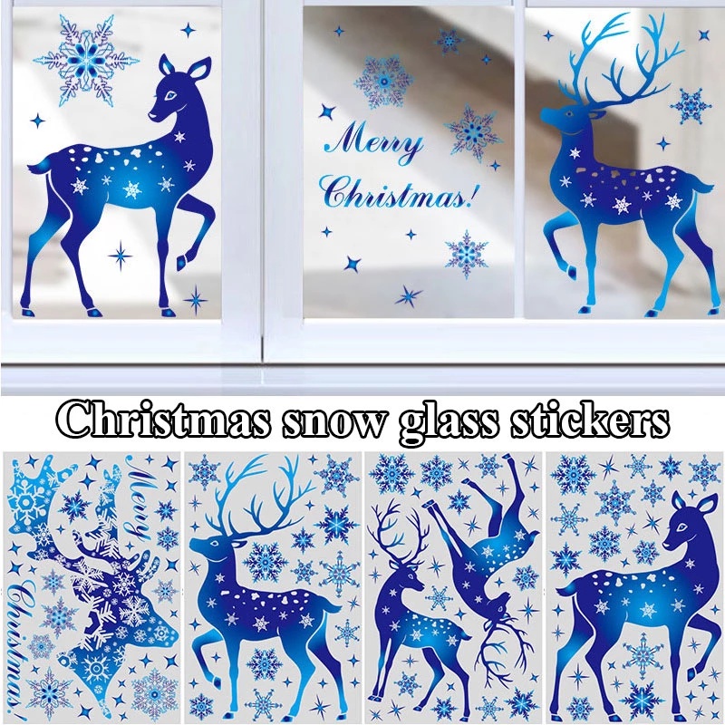 MSC Stiker Jendela Kaca Natal Christmas Blue Elk Electrostatic Glass Window Sticker Ornament / Snowflake Sticker