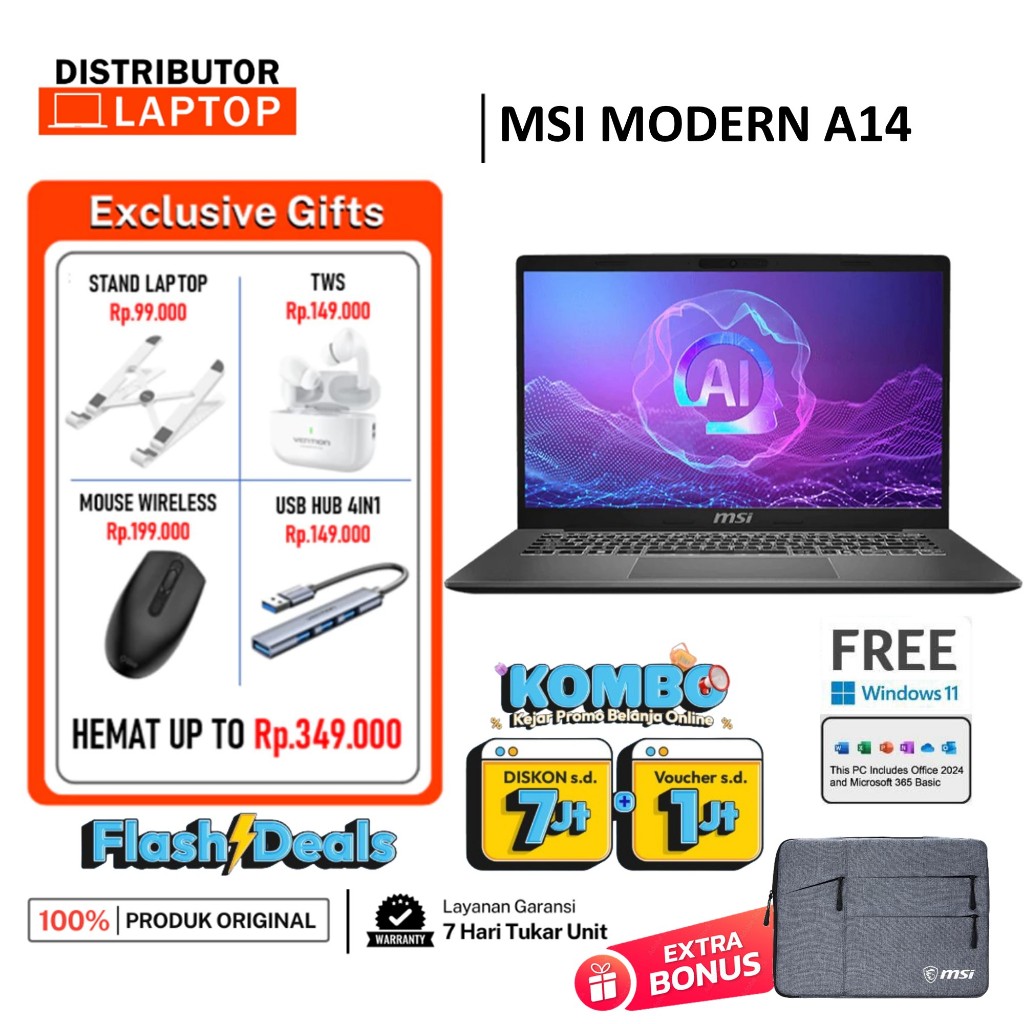 MSI MODERN A14 F2HMG 9S7 AMD AI RYZEN 7 250 RYZEN 5 220 8GB 512GB RADEON WIN11 OHS -LAPTOP ULTRABOOK
