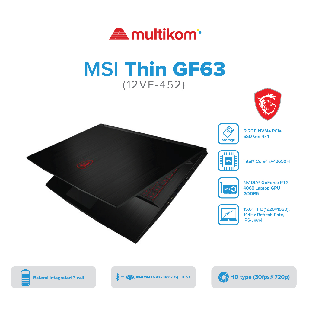 MSI Thin GF63 12VF-452 i7-12650H 16GB 512SSD RTX4060 8GB W11