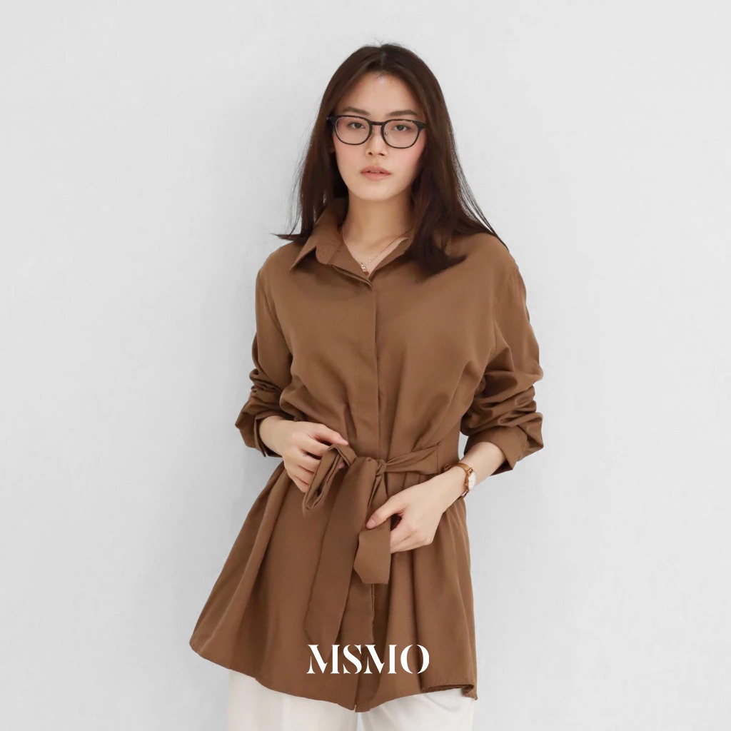 MSMO Bora Tied Shirt Kemeja Wanita / Blouse Wanita / Kemeja Lengan Panjang / Kemeja Kantor / Office Wear / Atasan Wanita Brown Grey