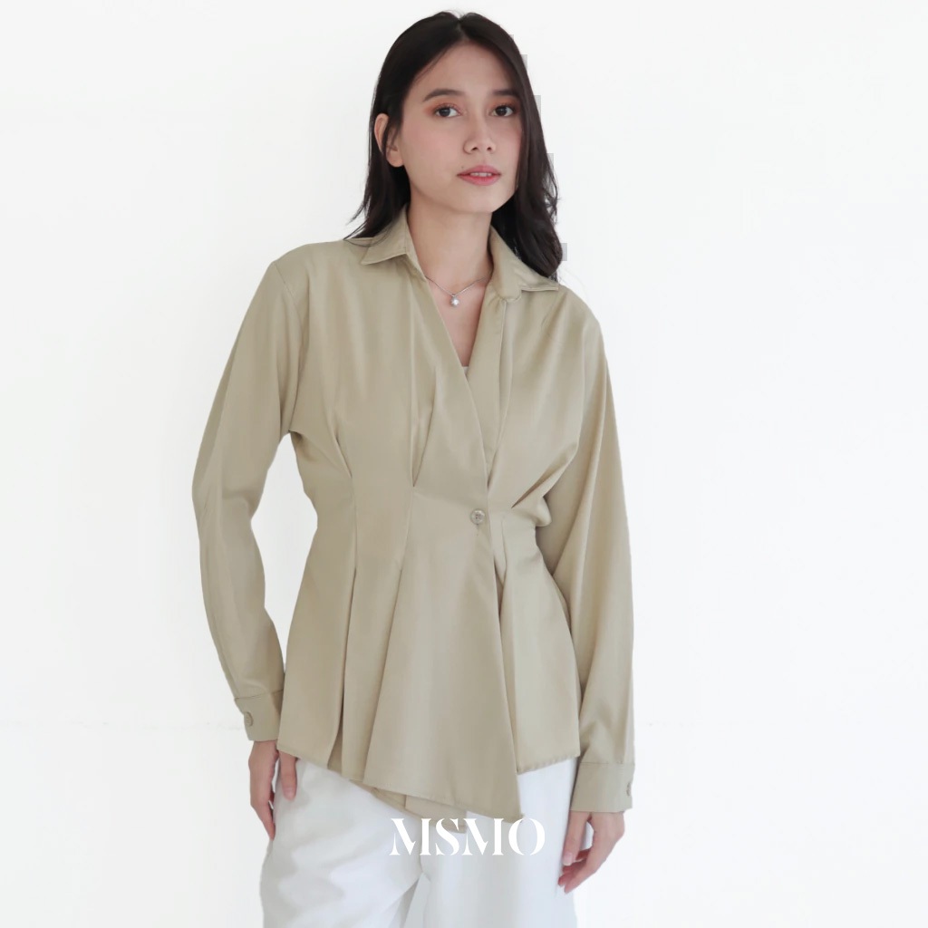 MSMO Sylvie Top / Blouse Wanita Lengan Panjang / Blouse Kemeja V Neck / Kemeja Wanita