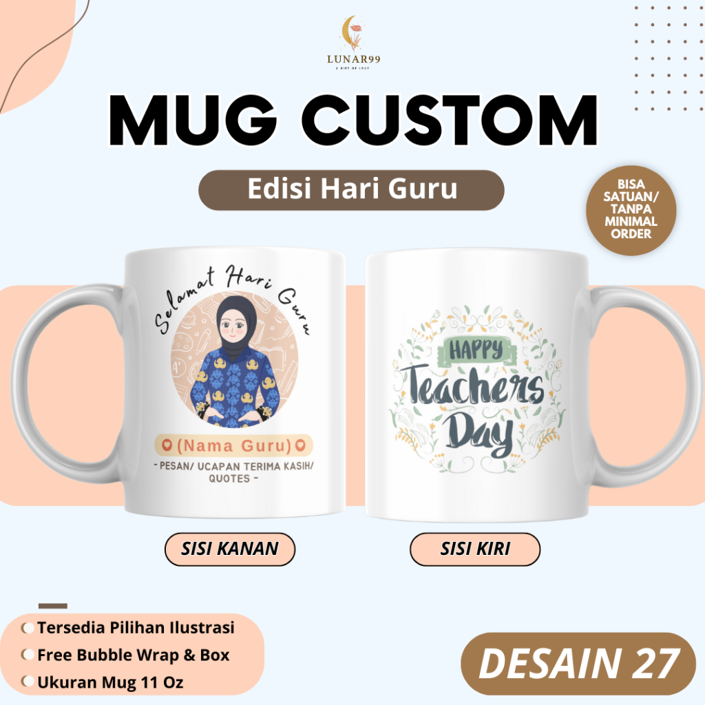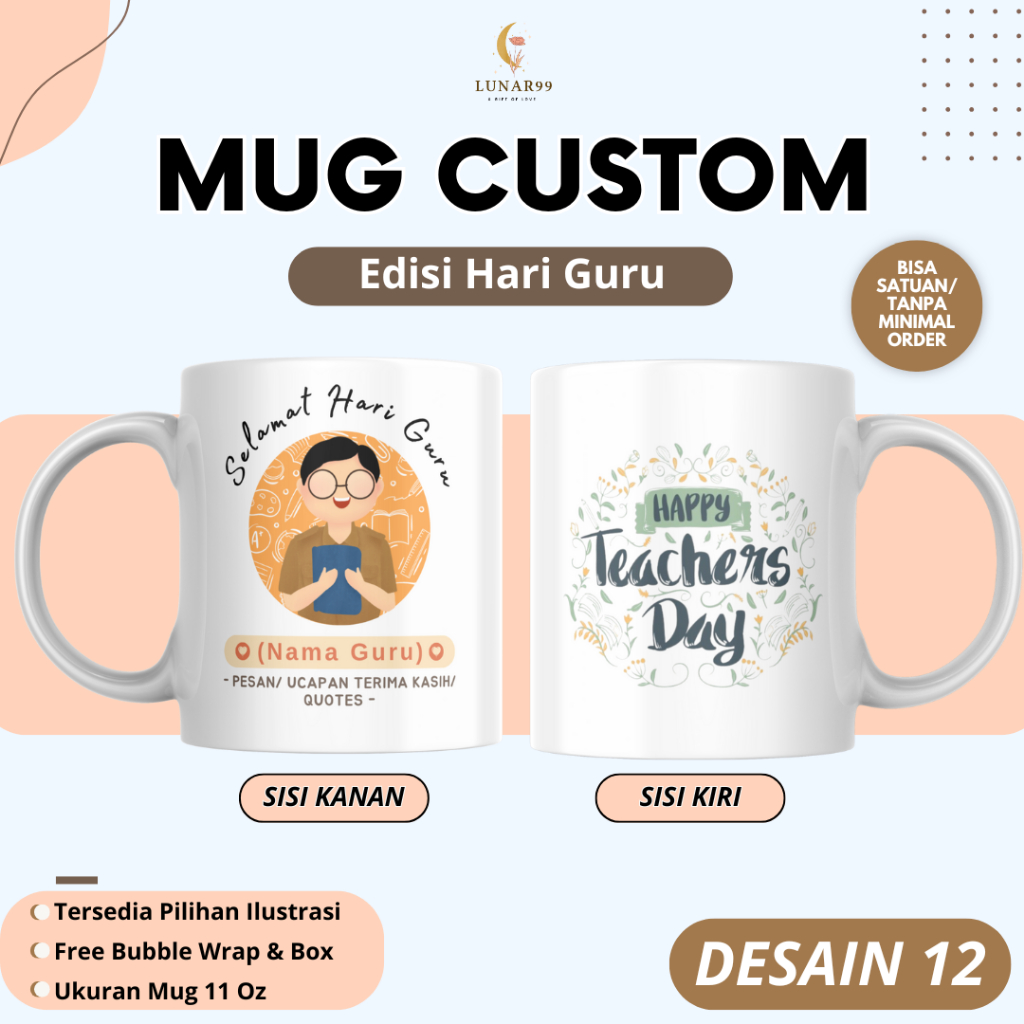 Mug Gelas Kado Hari Guru Custom Nama & Foto – Hadiah Hari Guru -- Mug Custom Edisi Hari Guru