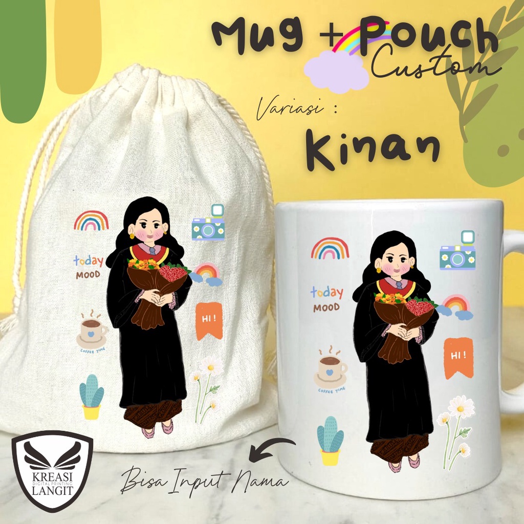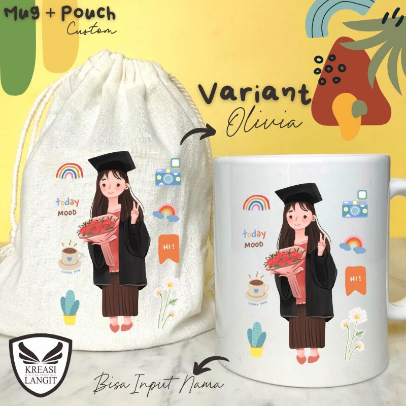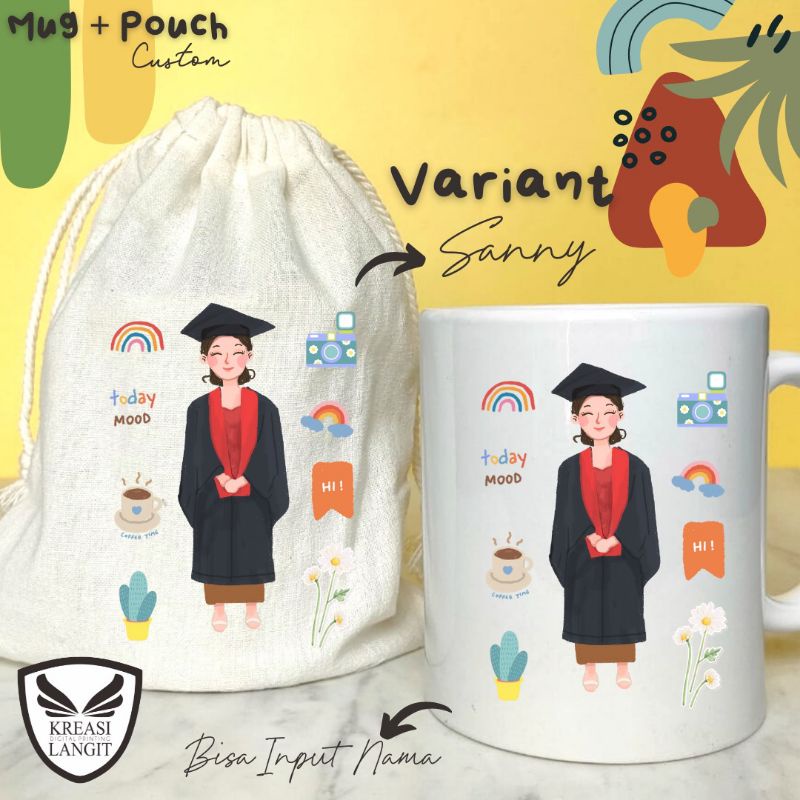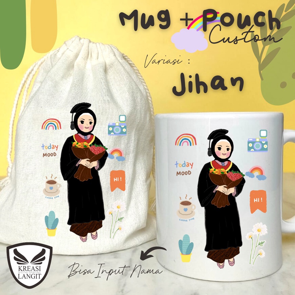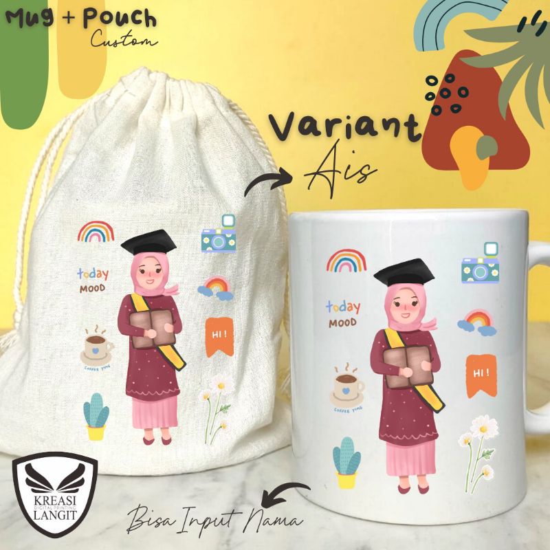 MUG DAN POUCH CUSTOM MURAH TEMA WISUDA / KADO WISUDA / HADIAH WISUDA