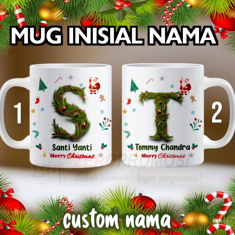 MUG NATAL INISIAL NAMA / MUG INISIAL NAMA CHRISTMAS / MUG HURUF / MUG NAMA