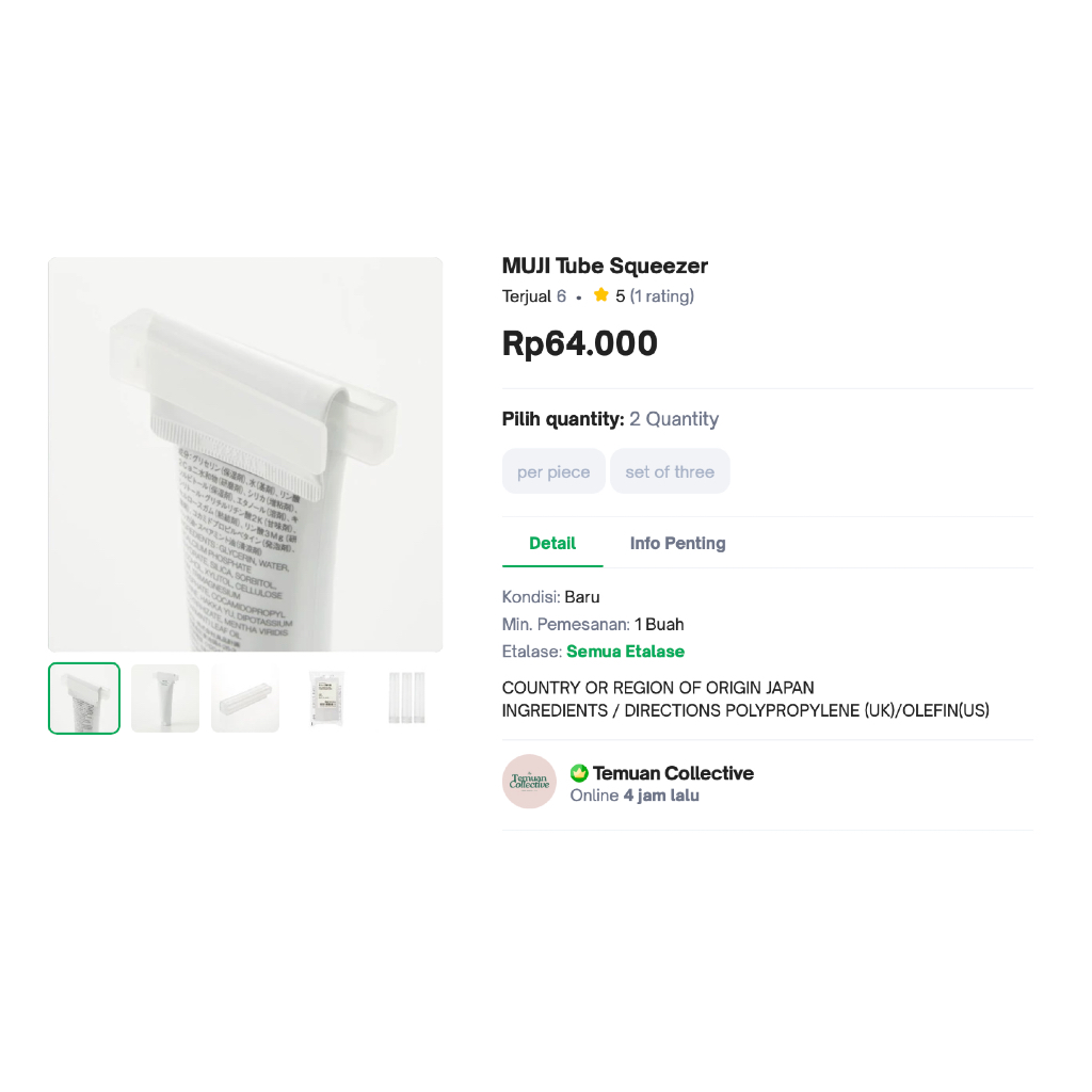 MUJI Japan Tube Squeezer - Skincare / Toothpaste Container Squeezing Tool