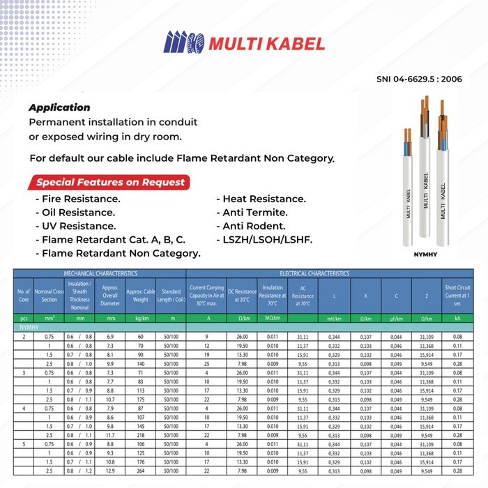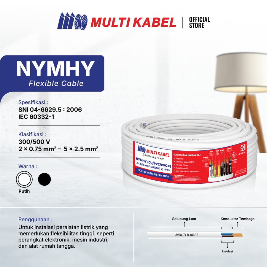 MULTI KABEL - KABEL NYMHY NYYHY 2X0.75 1ROLL 50M 100M Kabel Listrik Roll Tembaga Serabut 100m 50m PVC SNI
