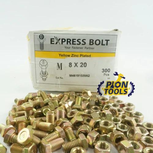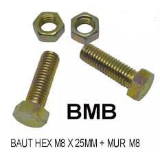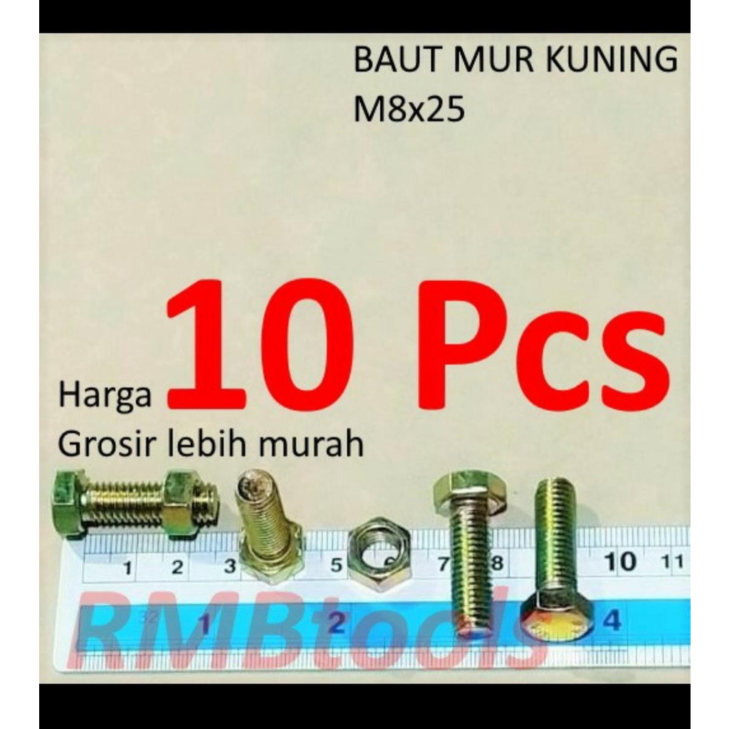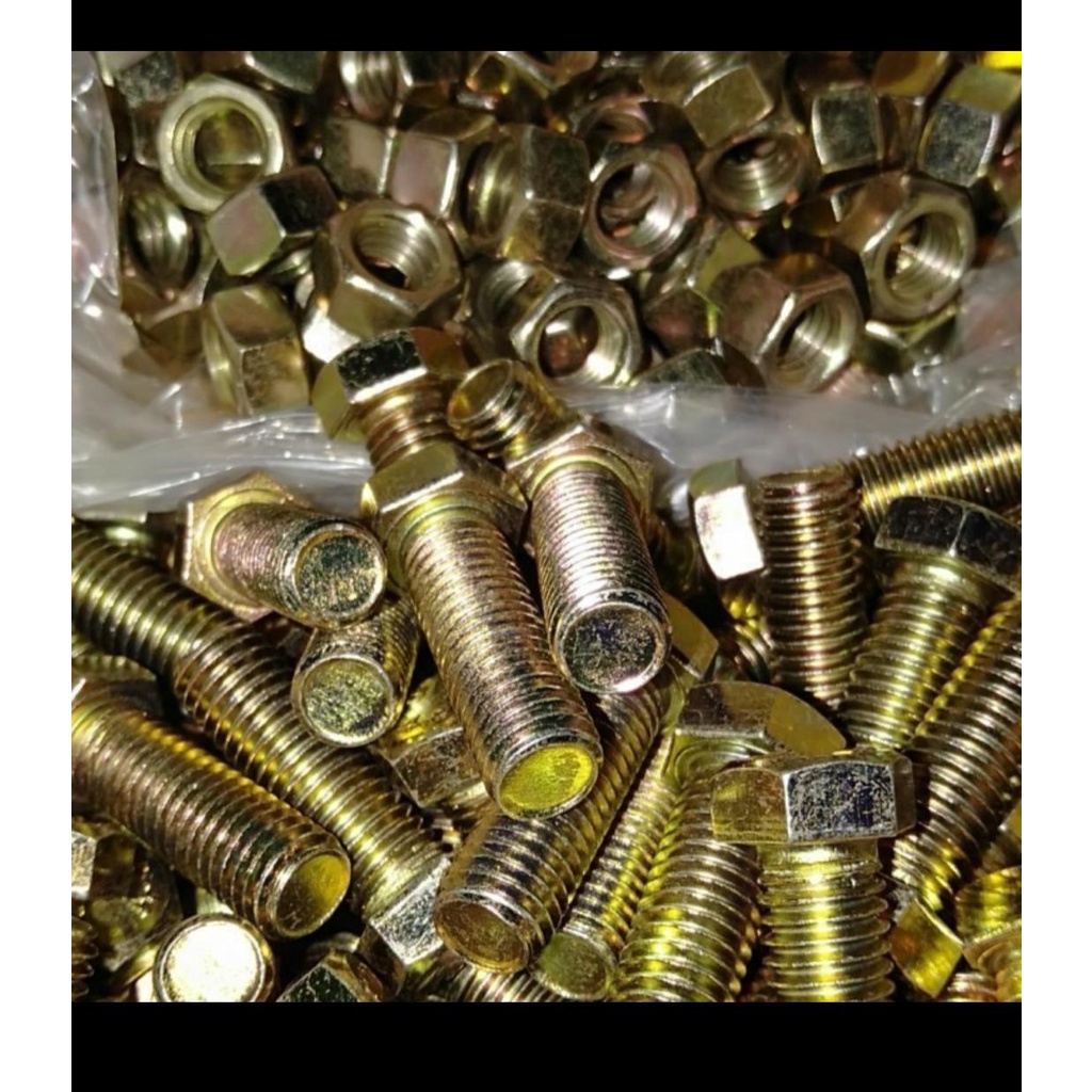 MUR BAUT UKURAN M8 x 25MM KUNING (HARGA SATUAN)- BAUT MUR M8x25- BAUT KUNING M8x25- BAUT MUR KUNING- BAUT HEXAGON- BAUT HEX- BMK