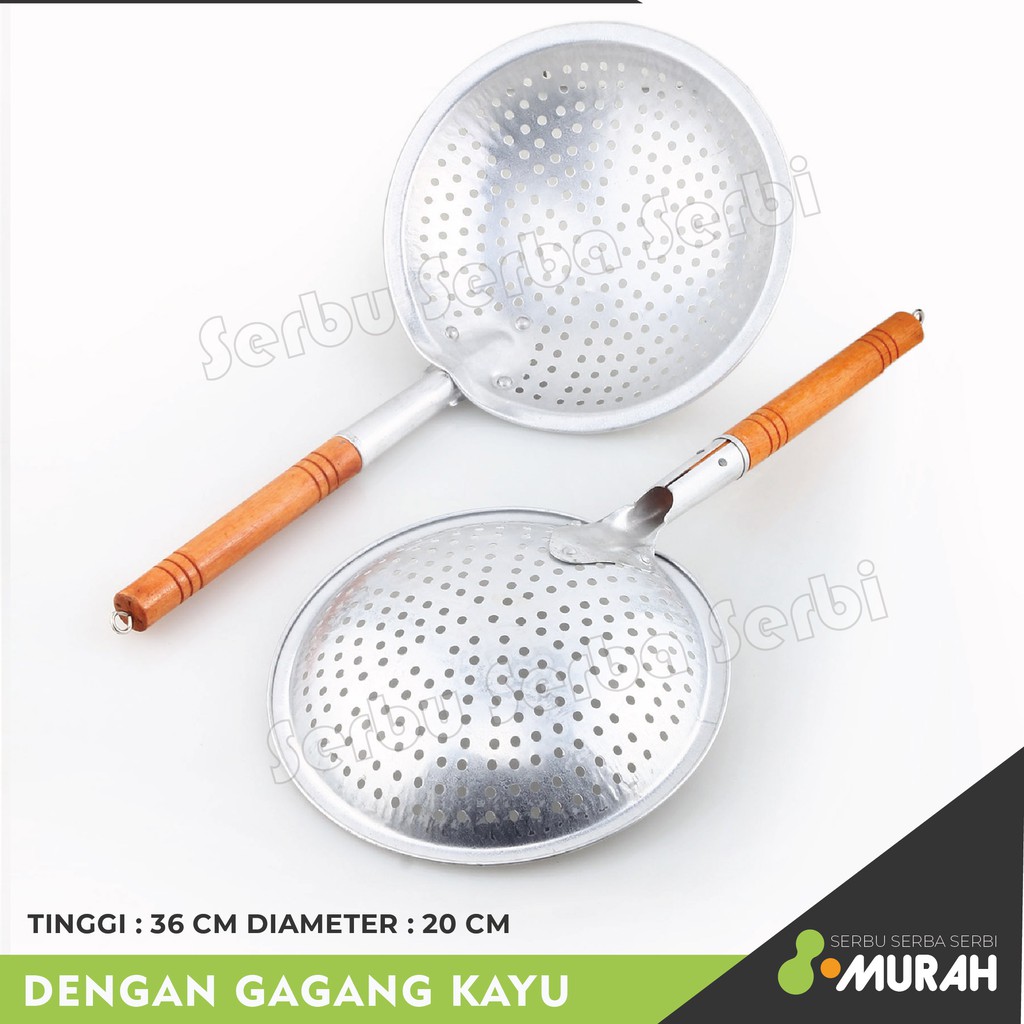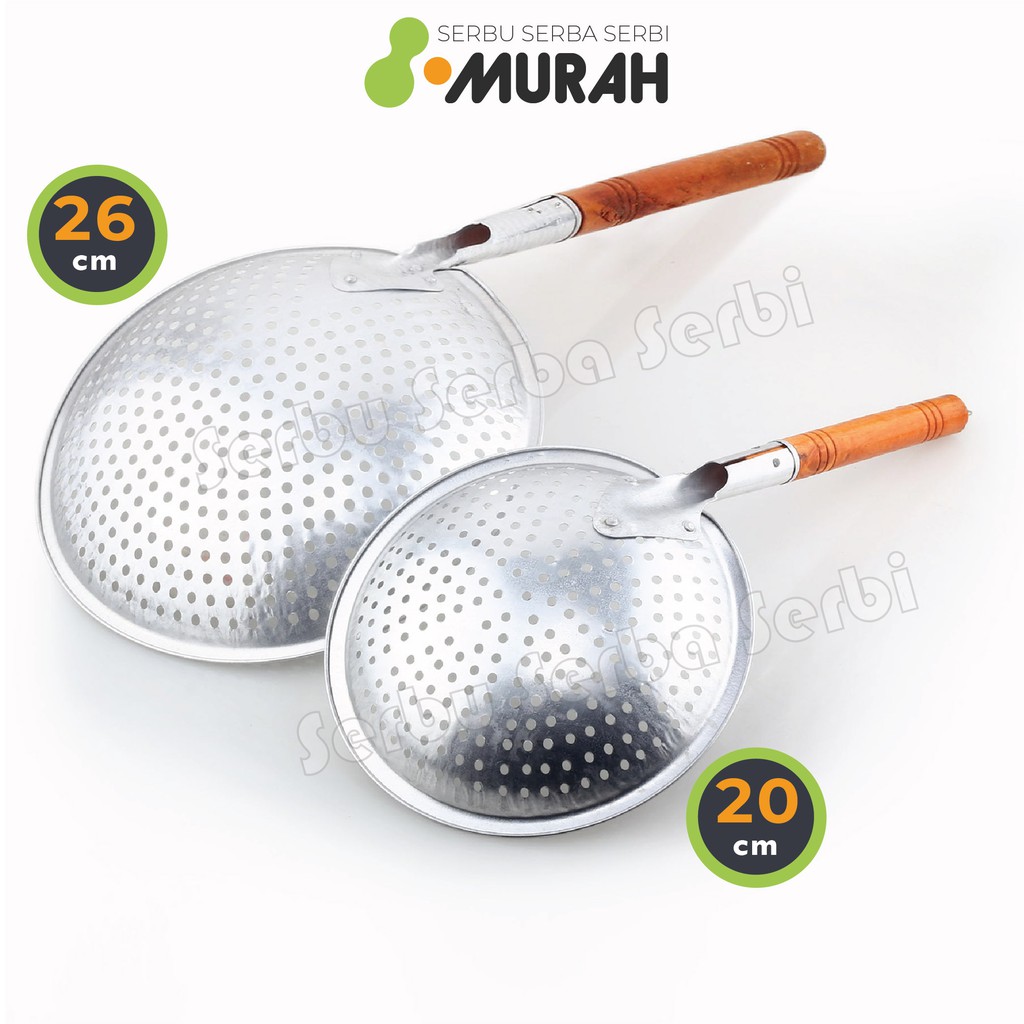 MURAH - SEROK MASAK / Saringan Serok Gagang Kayu - BOLONG - Strainer Frying