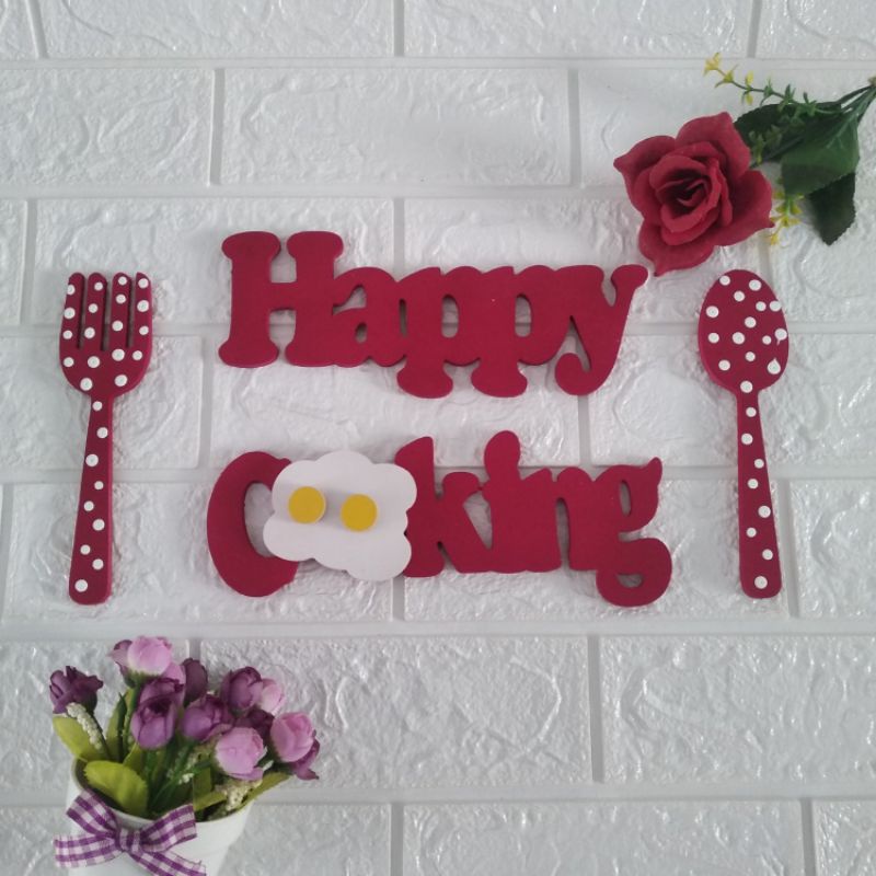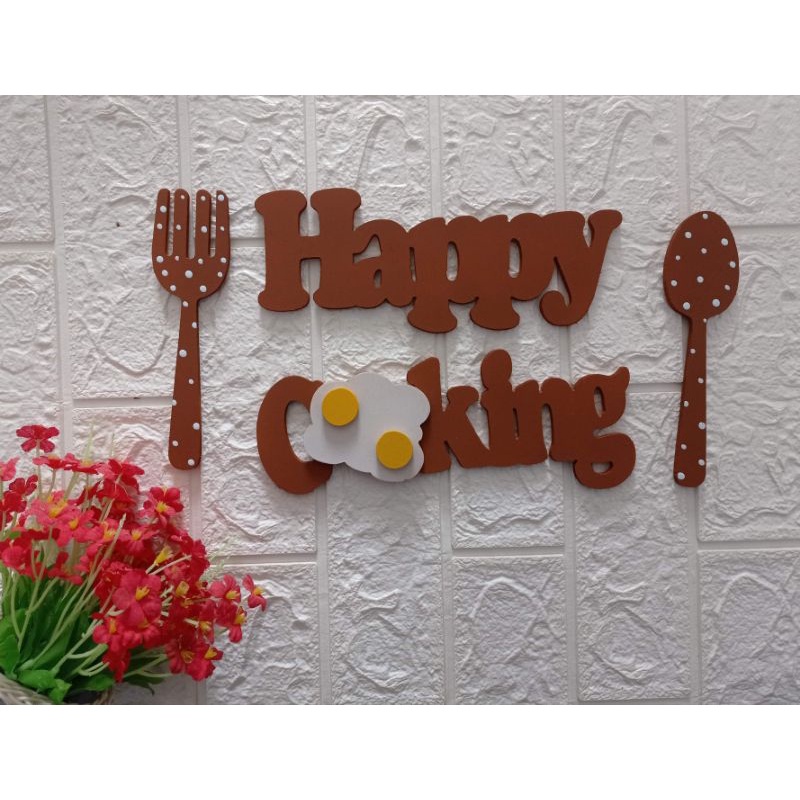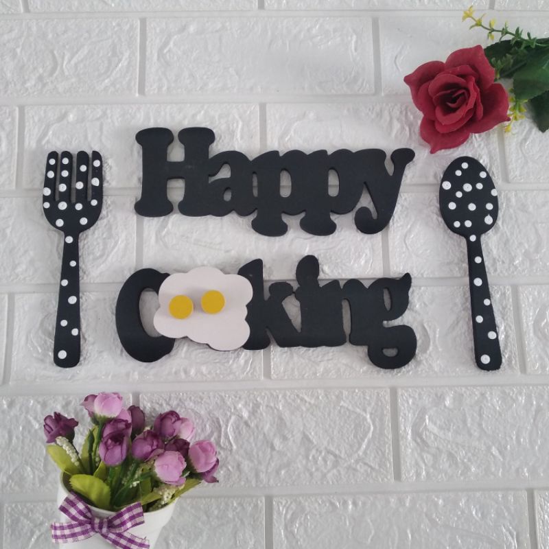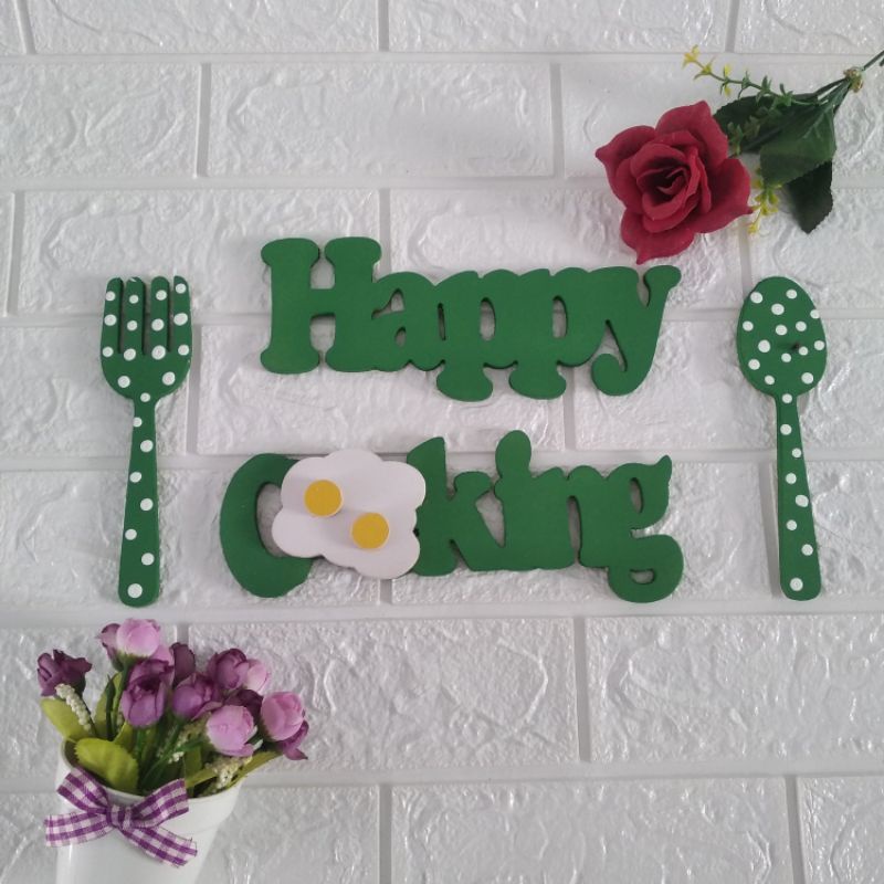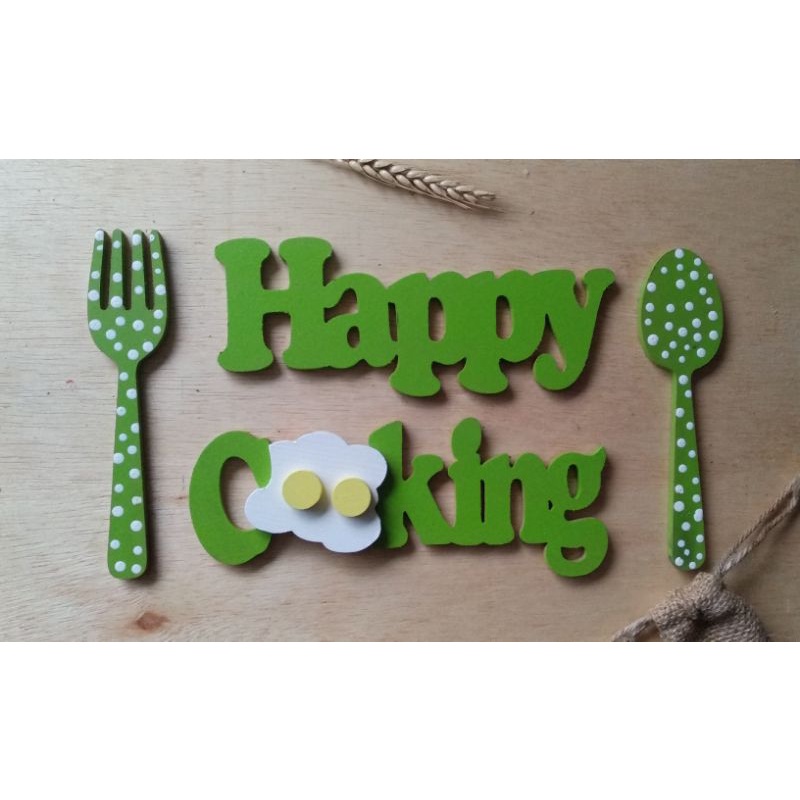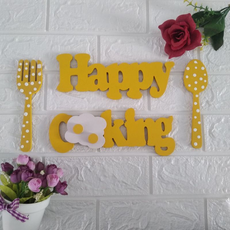 MURAHHH hiasan dinding dapur bahan kayu hiasan dinding dapur tulisan happy cooking hiasan dapur bagus dekorasi ruangan dapur