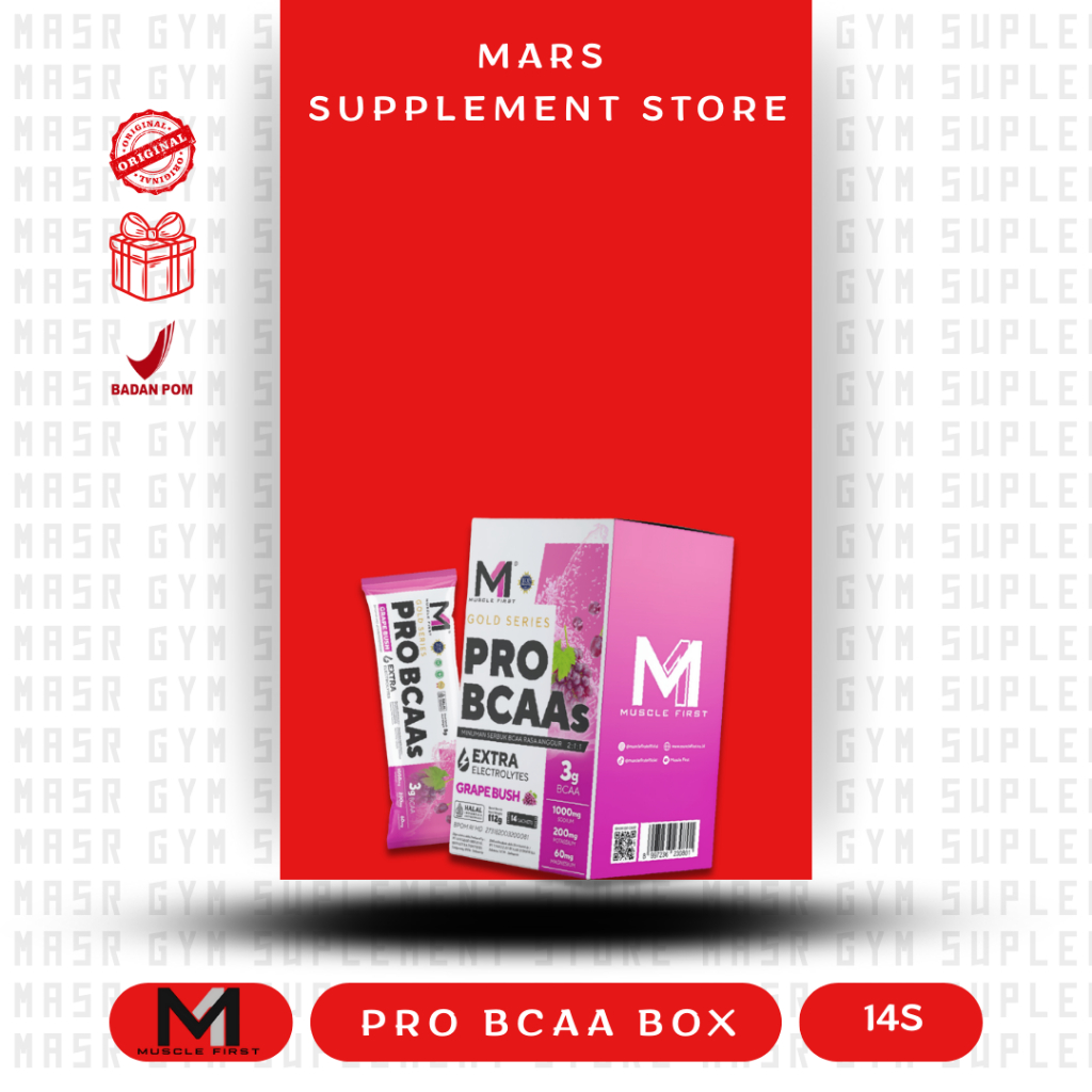 MUSCLE FIRST Pro BCAA 14 Sachets - Minuman Electrolytes Perbaikan Otot dan Hidrasi Untuk Lari Sepeda Aerobic Endurance