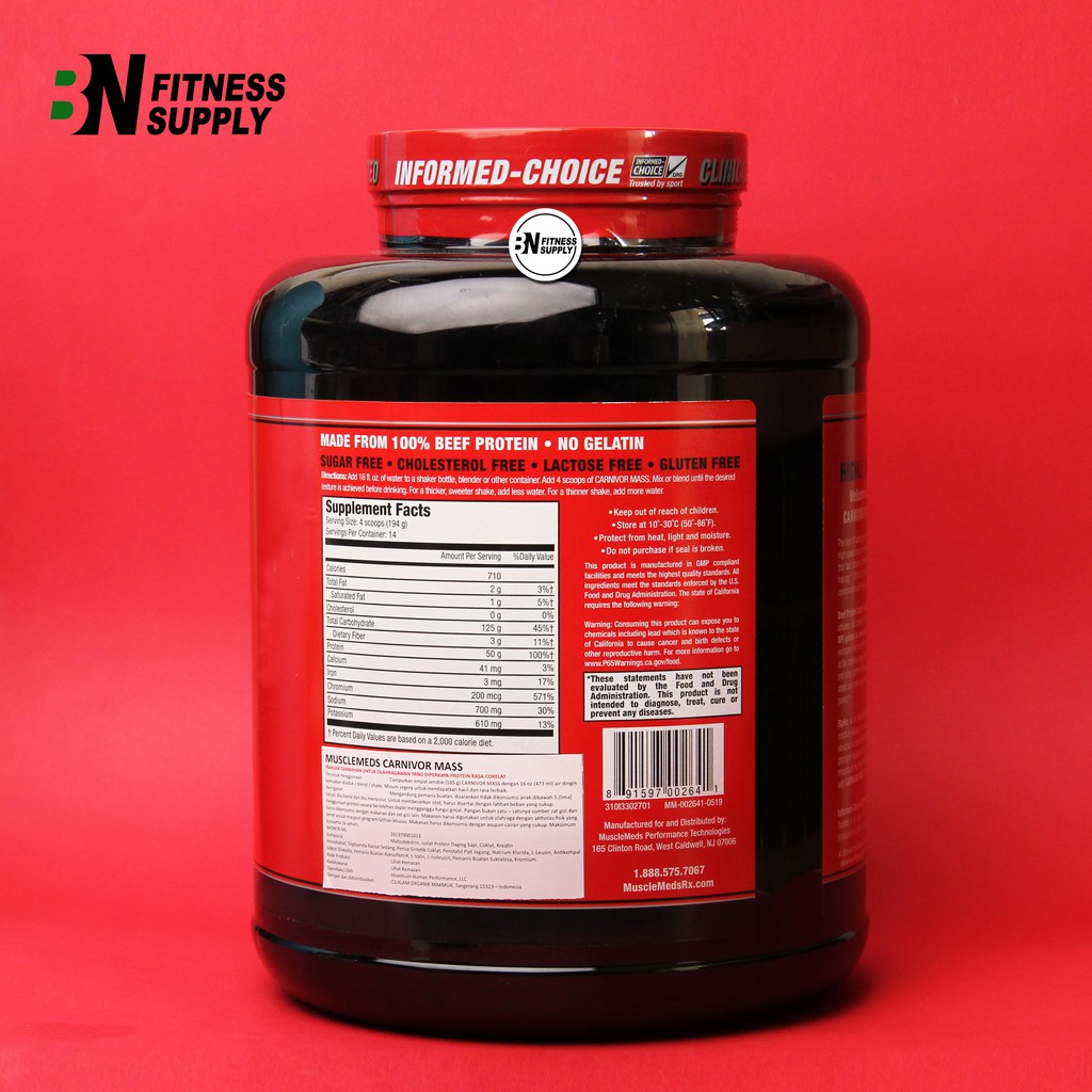 MUSCLEMEDS CARNIVOR MASS BEEF PROTEIN GAINER Powder | 6 LBS | 14 SAJIAN | 2.7 KG | 2716 GR