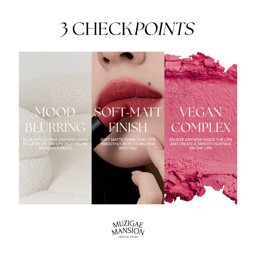 MUZIGAE MANSION Moodwear Blur Lipstick (8 Colors) - Lipstick Matte Blur Effect Ringan Transferproof