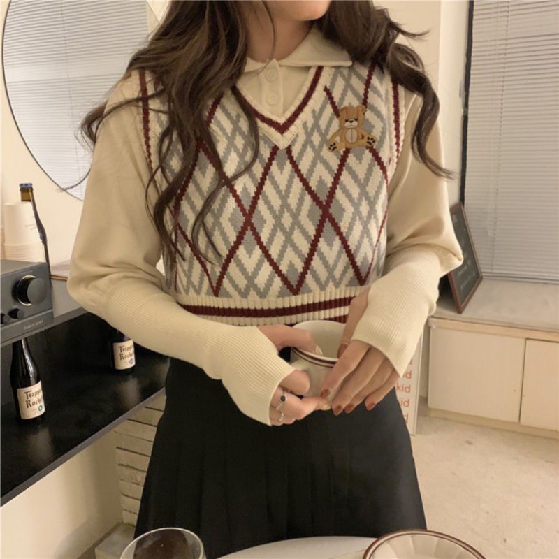 MYBEAR KOREAN KNIT VEST IMPORT ROMPI RAJUT PREMIUM HIGH QUALITY KOREAN STYLE | MY.FSHNM | VEST ROMPI BERUANG | ROMPI RAJUT CROP TOP KOREA | Fashion wanita Trendy | Outer Rajut | Vest rajut | Vest Rompi | Ootd Wanita Korean Y2K | Christmas outfit