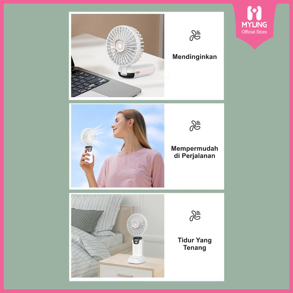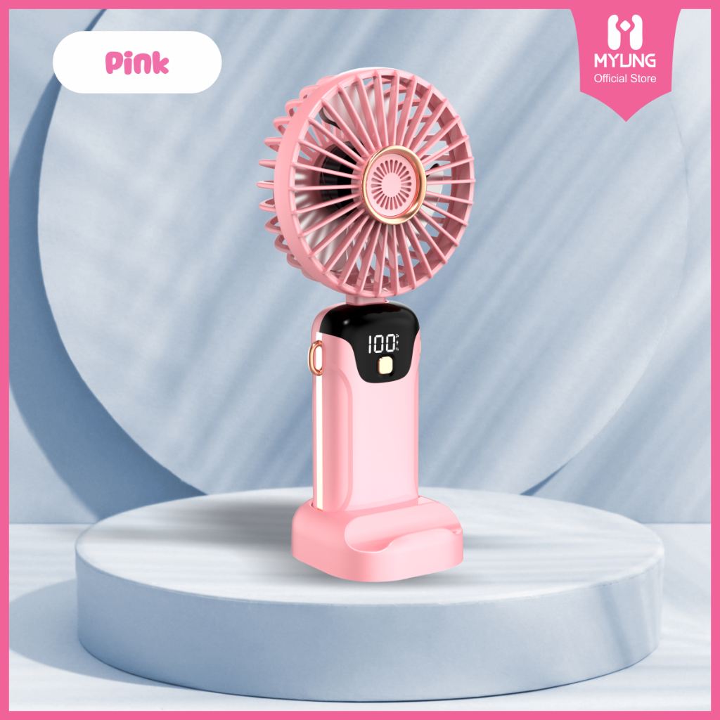 MYUNG Kipas Angin Mini Lipat Portable Usb Leher 5-Speed Wind LED Display 15000 mAh