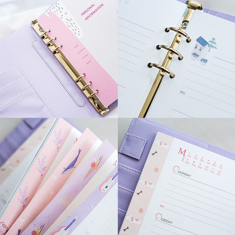 Macaron 365 Leather Binder A6 / Binder Ukuran Kertas A6 6 ring