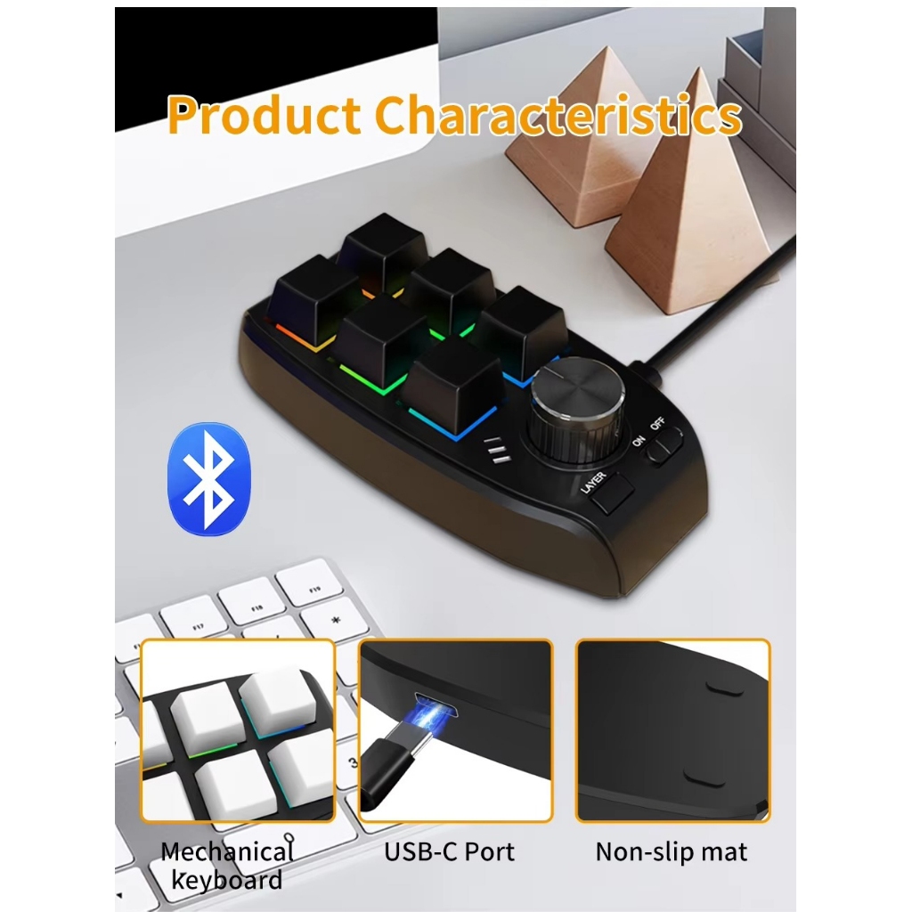 Macropad Dumbpad Dumpad Numpad Macro Keyboard Mechanical Hotswap Knob Mini Wireless Bluetooth Backlight LED Gaming Multimedia RGB Programable Tombol Red Switch Custom Android 3 6 12 Key Wires USB Type C Dual Mode Volume Control Shortcut PC Laptop Komputer