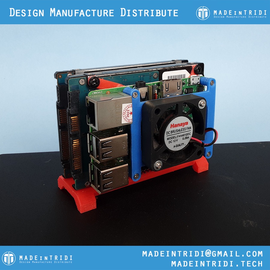 Madeintridi casing Raspberry Pi SSD/HDD 2.5" Case Raspi NAS Server Case with Fan Mount holder