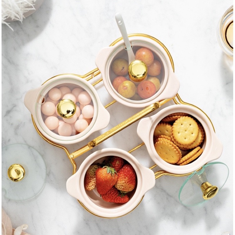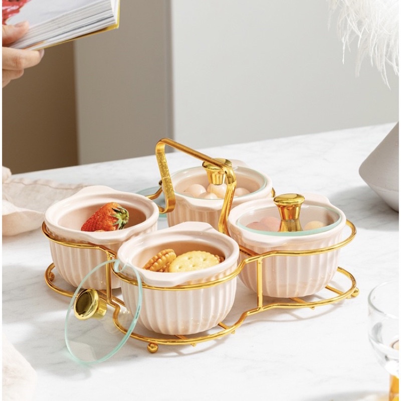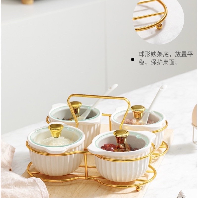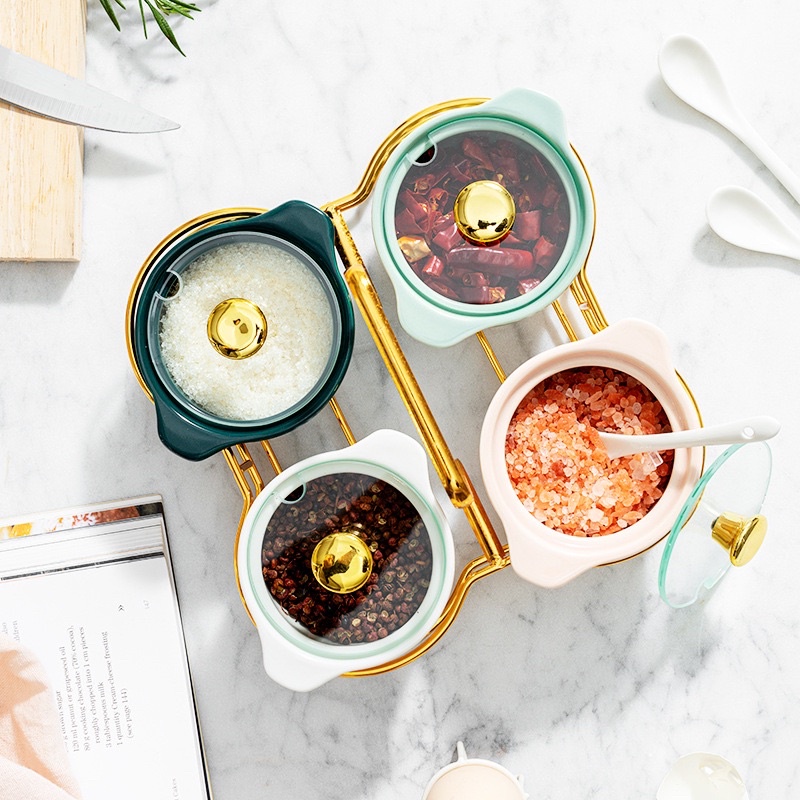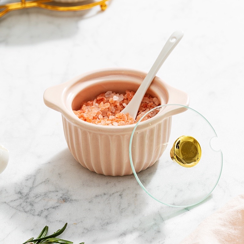Wadah Bumbu Keramik Madeleine Tempat sambal Mewah Tutup Kaca Premium Estetik 4 Warna hoomey