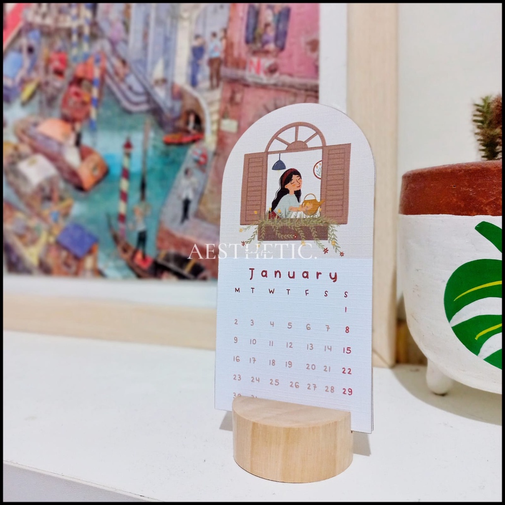 Madforaesthetic Kalender Meja Estetik Wooden Table Calendar Aesthetic