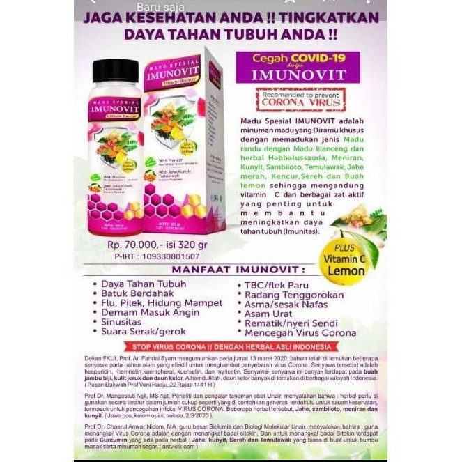 Madu Imunovit / Madu Bravina Imunovit / Madu Immune Booster