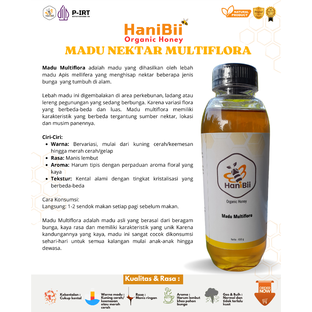 Madu Murni Asli Multiflora Netto 650 G HANIBII Maduku
