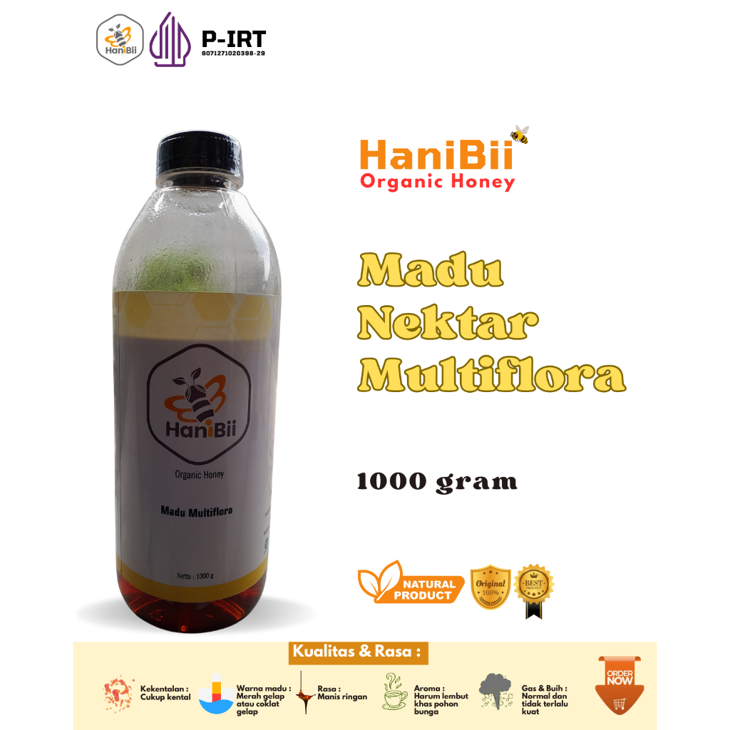 HANIBII Madu Murni Asli Nektar Multiflora Isi 1000gr Terlaris