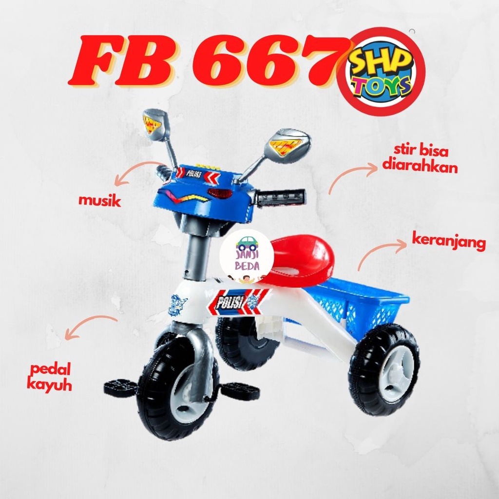 Maenan Anak Sepeda roda tiga Tricycle FB 667 - SHP Toys fb 581 police Polisi Gowes Lucu Patrol