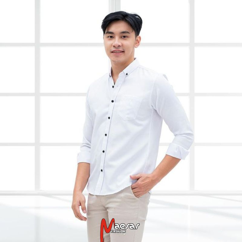 Maesar Fashion Kemeja Hitam Pria Lengan Panjang Premium Bahan Katun/Kemeja Hitam Polos Panjang/Kemeja Hitam pria lengan Panjang/kemeja Hitam formal/kemeja kasual