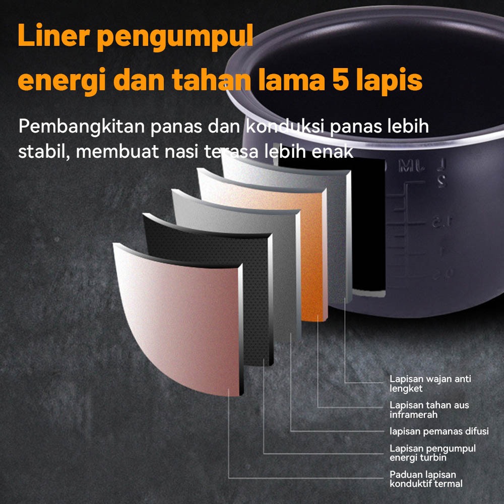 Magic Com Mejikom 5L Kapasitas Besar - Digital Low Carbo, Mini Body Portable Multifungsi untuk Rumah Keluarga
