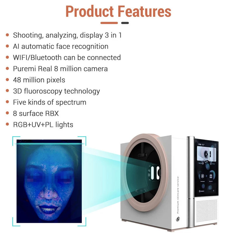 Magic Mirror 12 Spectrum Al Face Scanner 3D Smart Skin Analysis Machine HD Digital Diagnostic Scanner Facial Skin Analyzer
